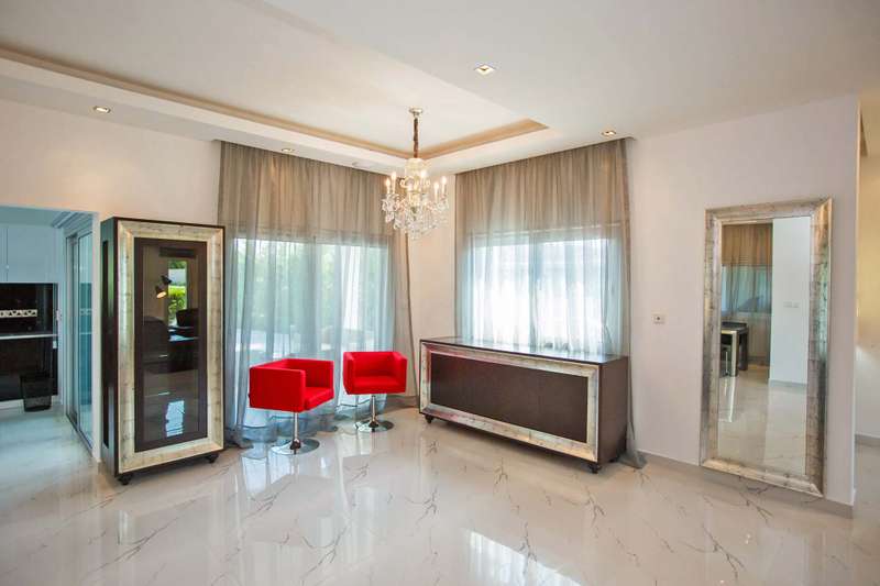 A modern 4 bedroom villa in prestigious area of Agios Tychon, close to all necessary amenities and infrastructure and within easy access to the sea, just 1000m away. The villa resides in a plot area of 590 sq.meters with an internal area of 275 sq.meters. Villa consists of three floors plus covered Roof garden and four bedrooms in total accompanied by one nanny’s room / guest studio. The modern Villa is fully furnished and equipped.