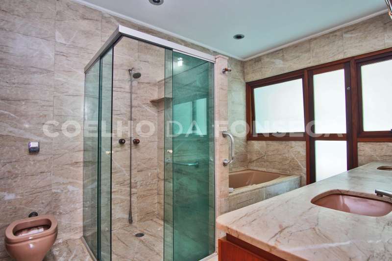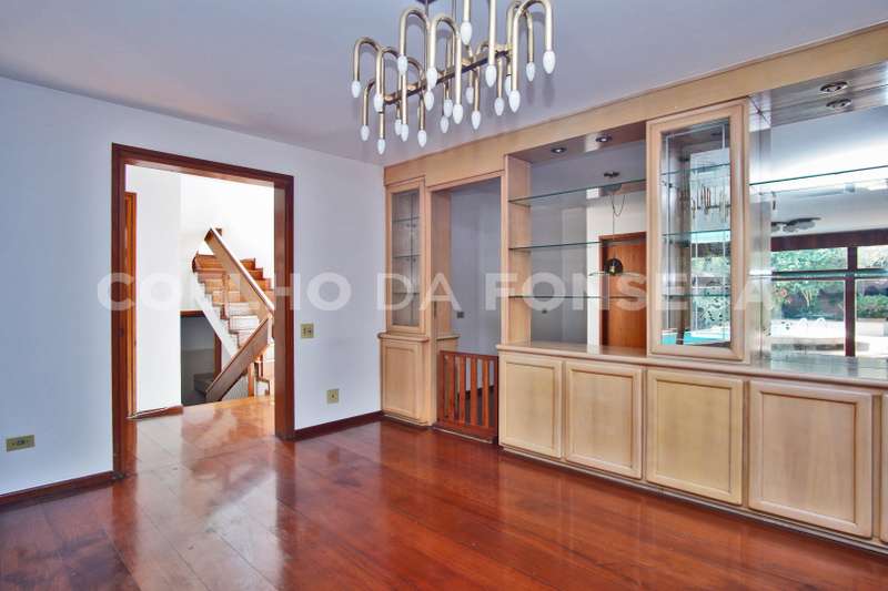 Casa em Rua Fechada no bairro Alto de Pinheiros com 522m² área construída, 4 dormitório(s), 4 suíte(s), 4 vaga(s), 5 banheiro(s), piscina, escritório, sauna, rua sem saída, dep. de empregados, varanda, pé direito duplo.