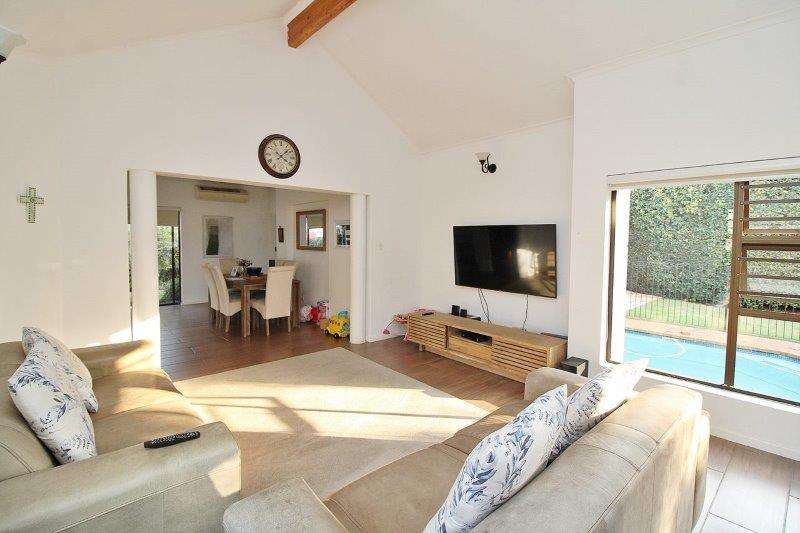 Simply stylish simplex splendour ! Offering comfortable and easy living with complete privacy and tranquility. Flowing receptions featuring a wood-burning fireplace, open plan kitchen with breakfast bar.3 sunny bedrooms,2 bathrooms, master bedroom with access to the garden. . Fully enclosed patio / sunroom leads onto the tropical garden and pool. Double garage, access controlled intercom entry. Conveniently located close to shops, schools, hospital and highway access.