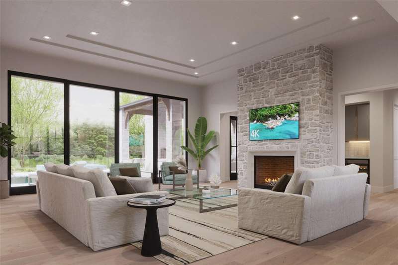 Step outside to an outdoor living oasis designed for year-round enjoyment. The expansive covered patio, complete with a fireplace and built-in grill, overlooks a stunning infinity-edge pool that seamlessly blends with the Hill Country vistas. Perfect for entertaining or quiet evenings under the stars, this space elevates outdoor living to an art form. The 13-acre lot, dotted with mature oaks and gentle slopes, offers privacy, space for equestrian pursuits, or room to create your own legacy estate.