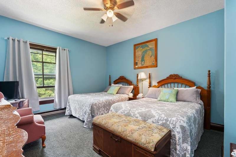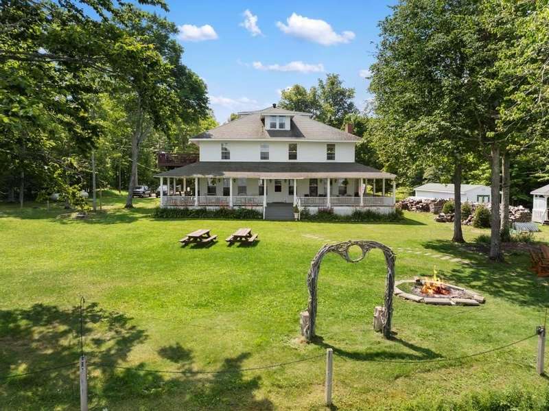 Perched upon the shores of Big Manistique Lake in Michigan's Upper Peninsula, The Belvedere Grand (formerly Chamberlin's Ole Forest Inn) offers a rare opportunity to own a beautifully restored historic inn set on 3.75 acres, with 300 feet of frontage complete with a private dock and easy access for kayaking and boating. This 12-room property blends timeless charm with modern comfort, offering inviting common areas with amazing elevated lake views from the wrap-around deck, fire pit or hot tub! Currently operating as a successful bed & breakfast with a bistro, cafe, bar, and event spaces, it's a turnkey business or residence with year-round appeal; from summer lake adventures to winter snow sports. Expansive grounds, lake views, and a quaint, historic ambiance make it equally suited for continuing its legacy as a premier hospitality destination or transforming it into a private lakeside residence or family retreat.