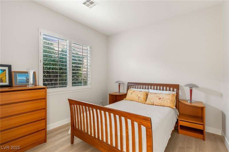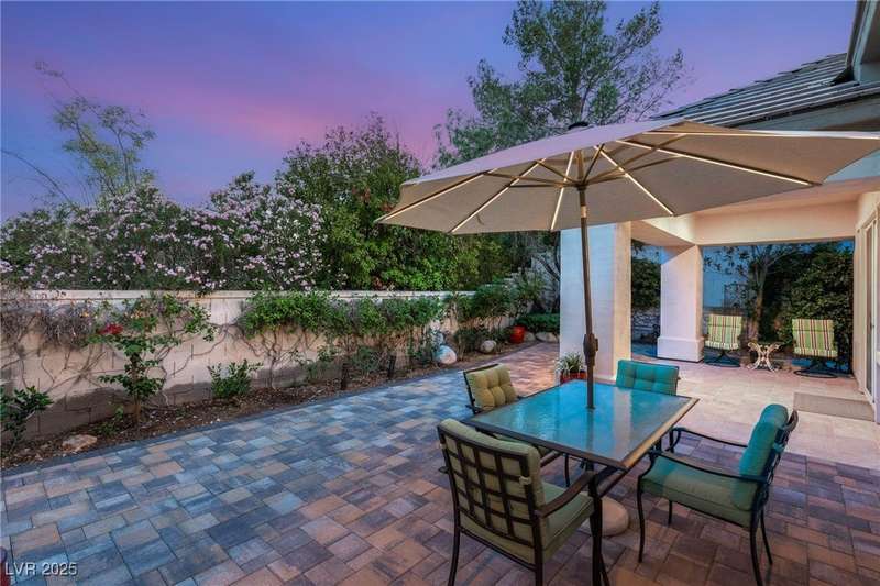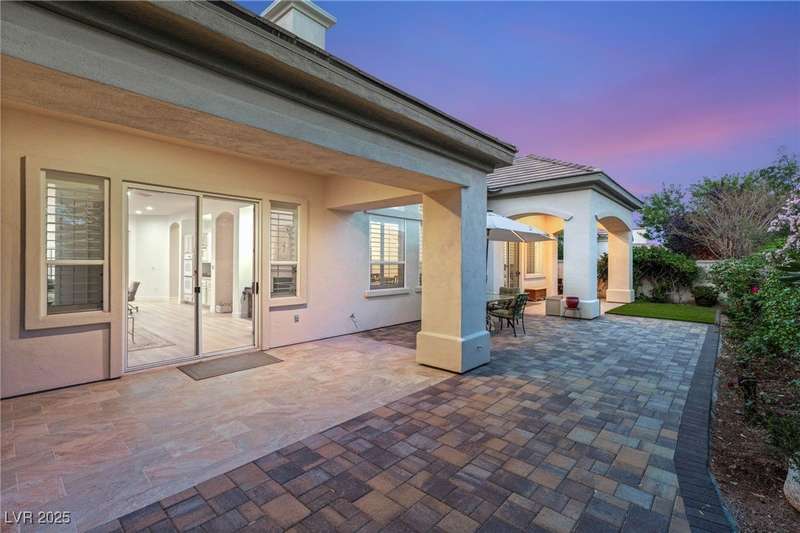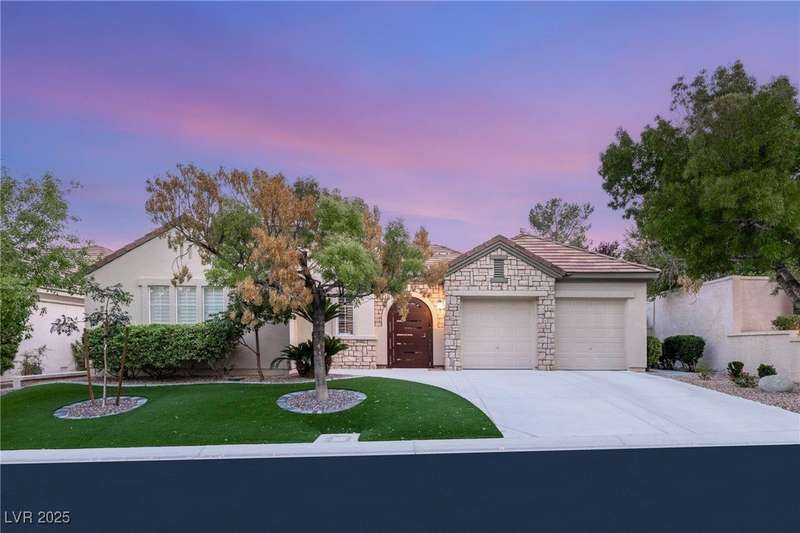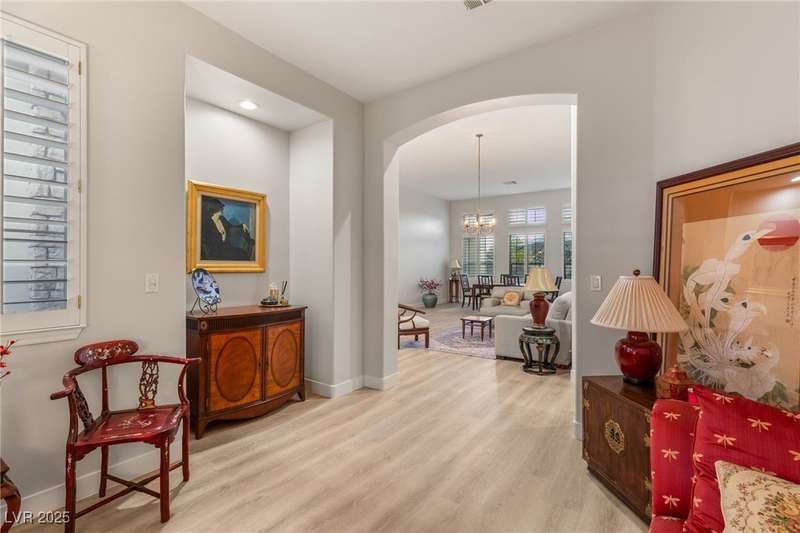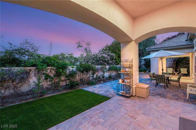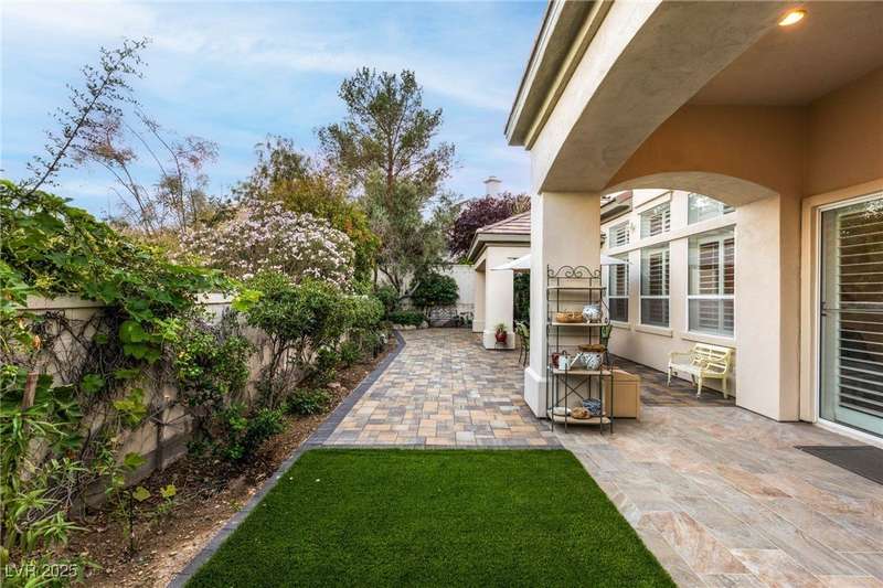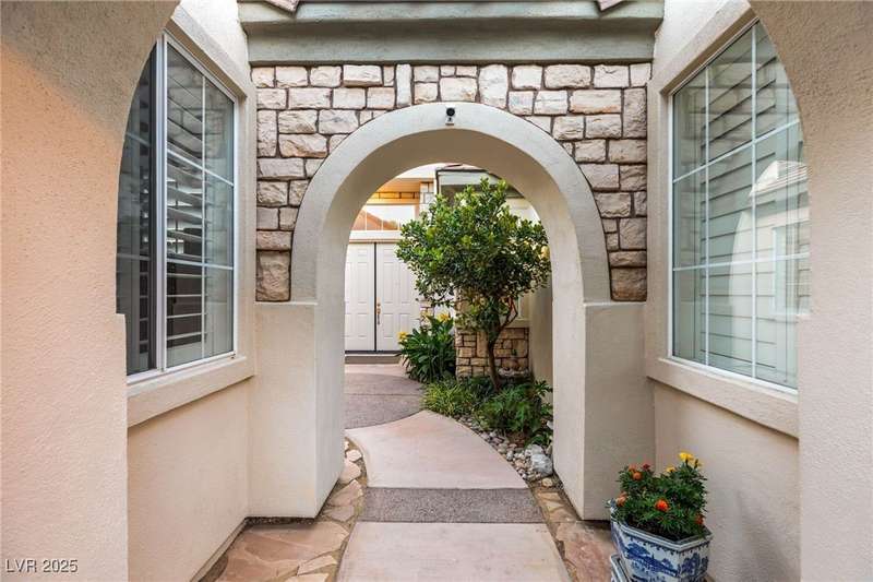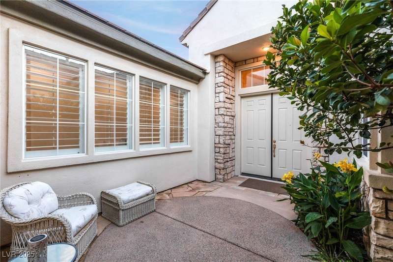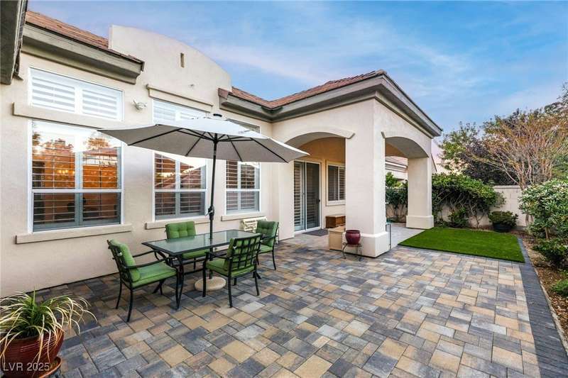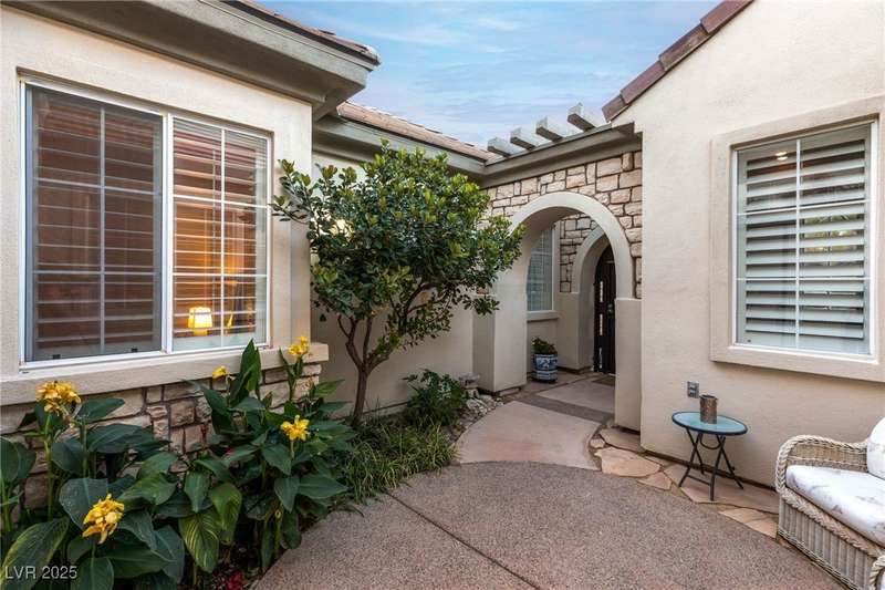 Remarkable, immaculate single-story home located in the prestigious guard gated community of Queensridge! Step through the fully enclosed private courtyard and into a home that perfectly combines elegance with modern upgrades. Recently painted inside and out, this bright open floor plan boasts brand new flooring, soaring ceilings, and windows with custom plantation shutters. The kitchen flows seamlessly into the living and dining spaces, while a spacious den/office adds flexibility for work or leisure. The primary suite is a luxurious retreat, highlighted by a newly remodeled spa-style bathroom with a freestanding soaking tub and oversized shower. Outdoors, enjoy your private oasis with double covered patios, upgraded landscaping, and pavers and patio flooring designed for year-round living. With fully remodeled bathrooms, refined finishes, and unmatched curb appeal, this home offers both comfort and sophistication—an opportunity to own in one of Las Vegas’s most coveted neighborhoods.