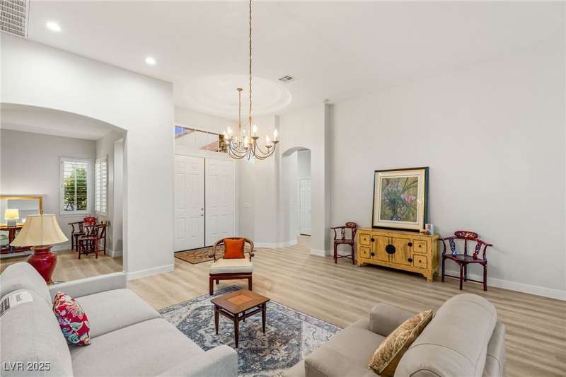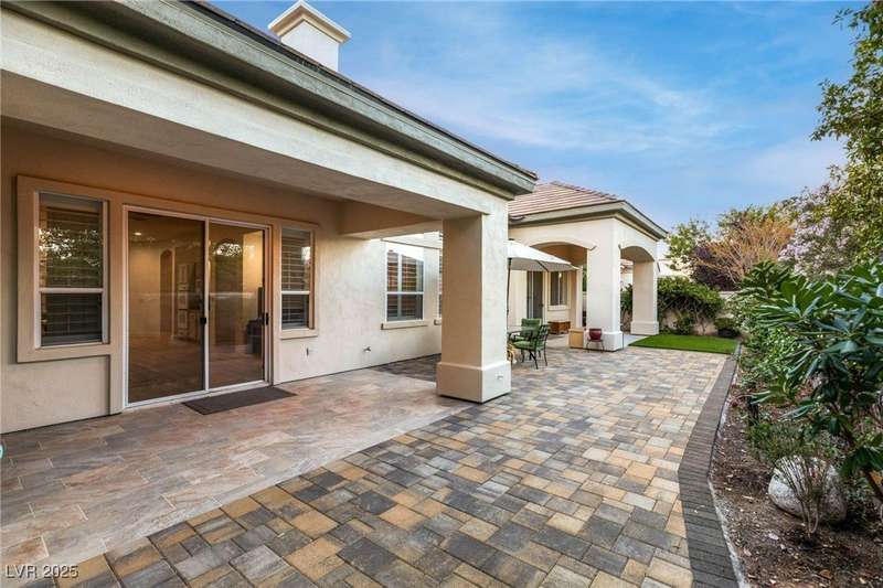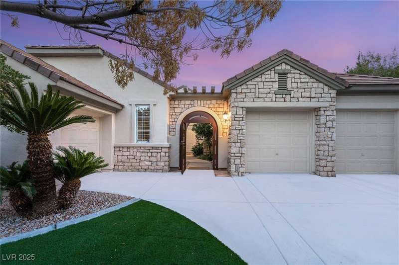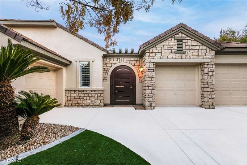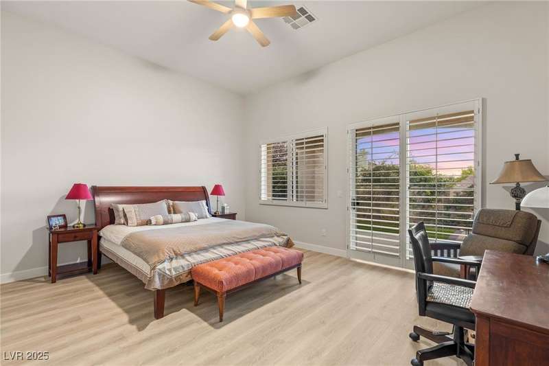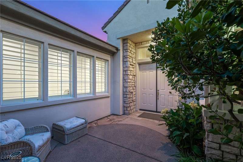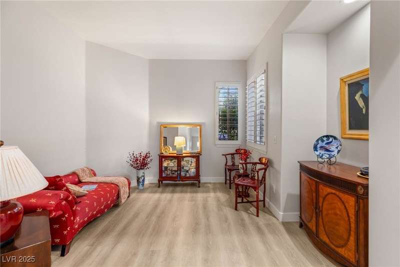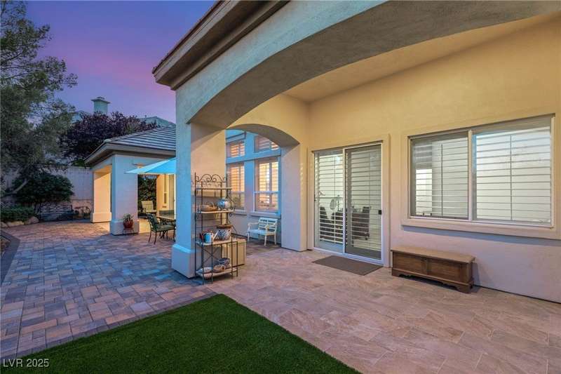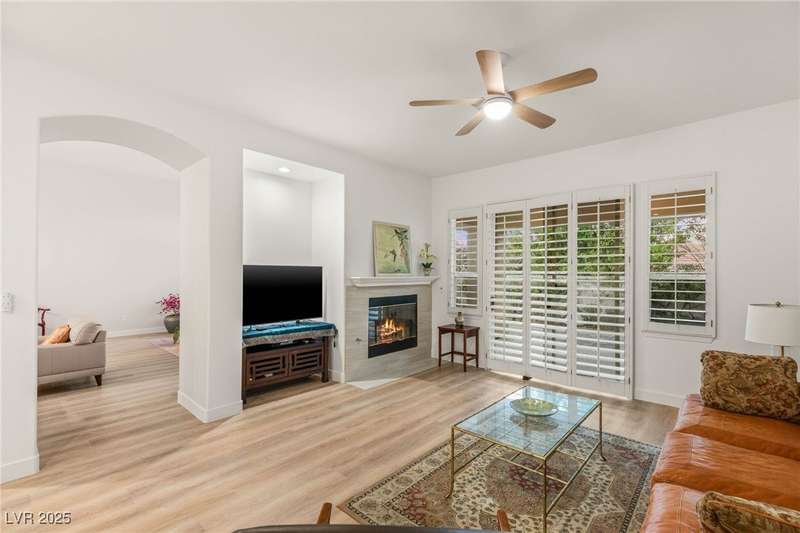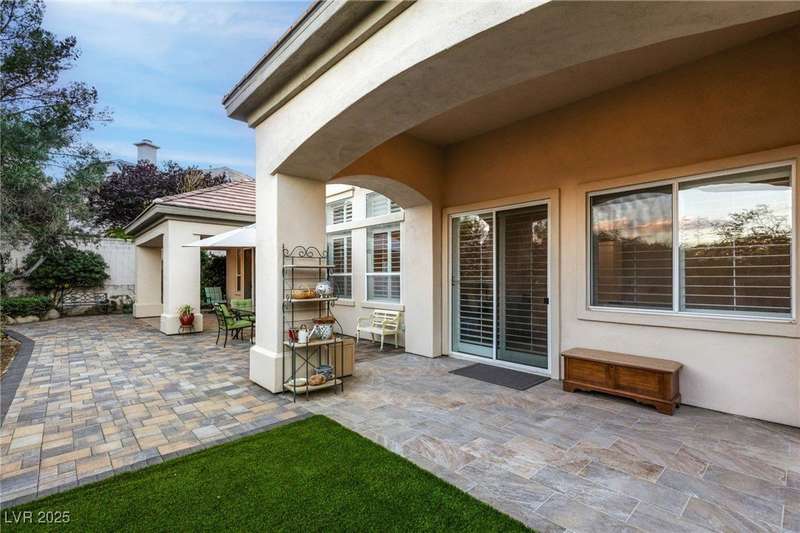 Remarkable, immaculate single-story home located in the prestigious guard gated community of Queensridge! Step through the fully enclosed private courtyard and into a home that perfectly combines elegance with modern upgrades. Recently painted inside and out, this bright open floor plan boasts brand new flooring, soaring ceilings, and windows with custom plantation shutters. The kitchen flows seamlessly into the living and dining spaces, while a spacious den/office adds flexibility for work or leisure. The primary suite is a luxurious retreat, highlighted by a newly remodeled spa-style bathroom with a freestanding soaking tub and oversized shower. Outdoors, enjoy your private oasis with double covered patios, upgraded landscaping, and pavers and patio flooring designed for year-round living. With fully remodeled bathrooms, refined finishes, and unmatched curb appeal, this home offers both comfort and sophistication—an opportunity to own in one of Las Vegas’s most coveted neighborhoods.