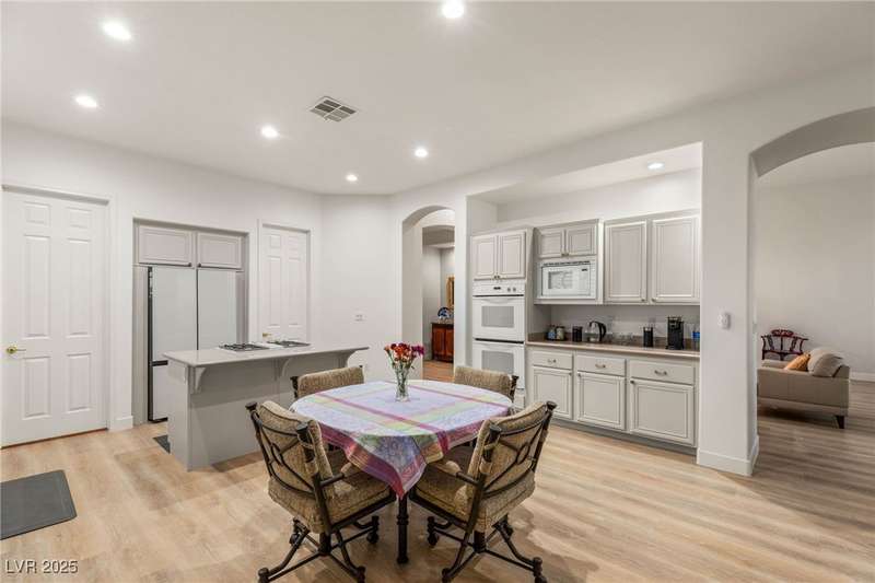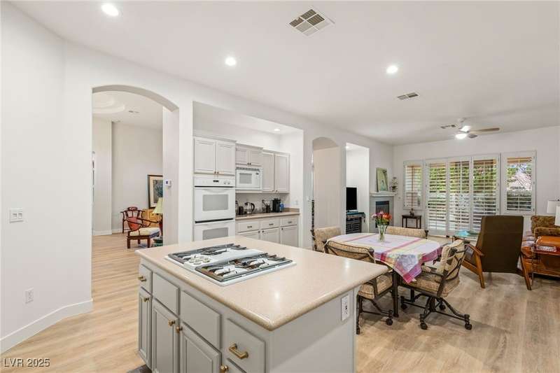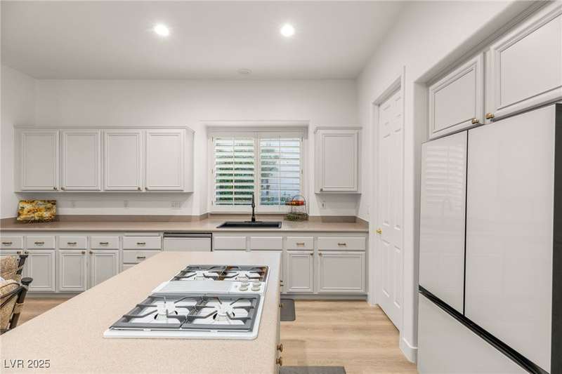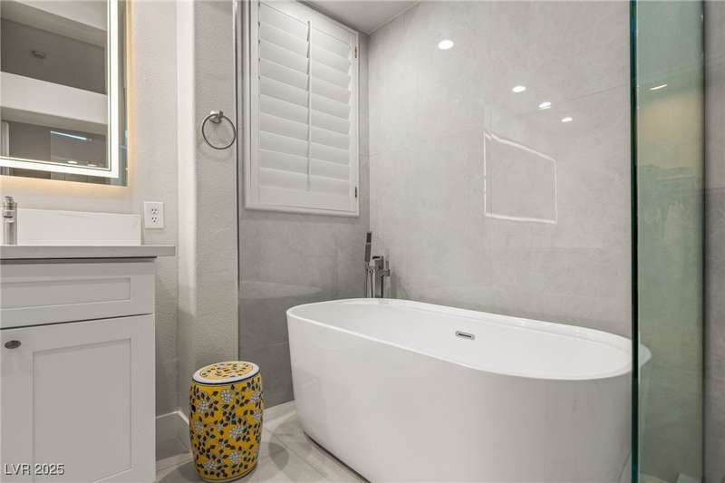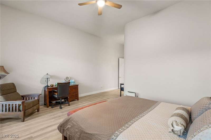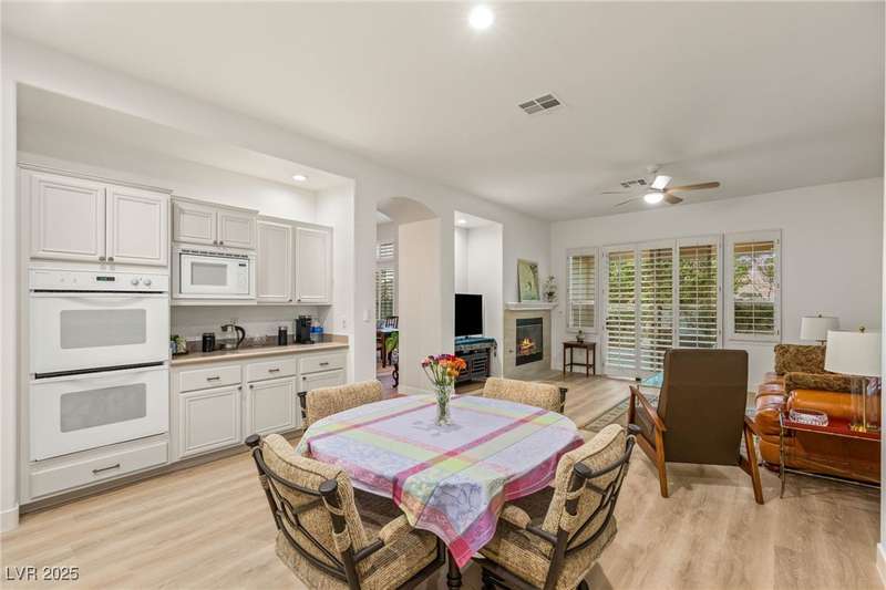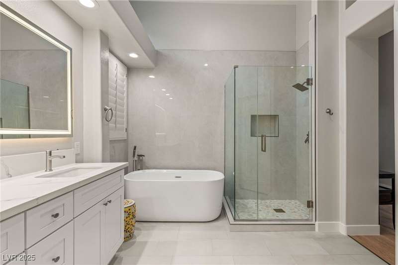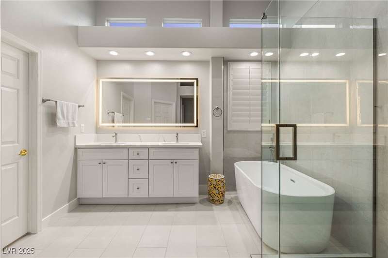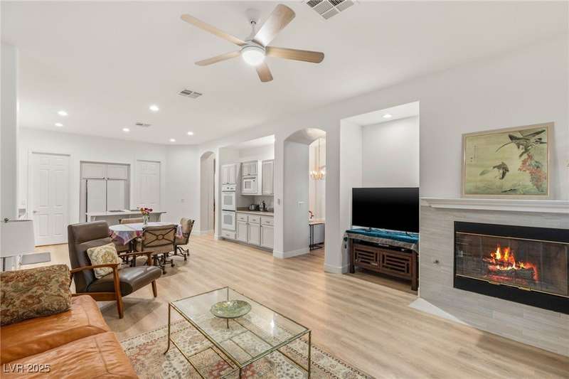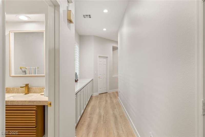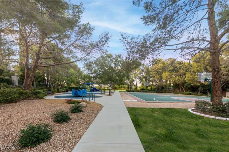 Remarkable, immaculate single-story home located in the prestigious guard gated community of Queensridge! Step through the fully enclosed private courtyard and into a home that perfectly combines elegance with modern upgrades. Recently painted inside and out, this bright open floor plan boasts brand new flooring, soaring ceilings, and windows with custom plantation shutters. The kitchen flows seamlessly into the living and dining spaces, while a spacious den/office adds flexibility for work or leisure. The primary suite is a luxurious retreat, highlighted by a newly remodeled spa-style bathroom with a freestanding soaking tub and oversized shower. Outdoors, enjoy your private oasis with double covered patios, upgraded landscaping, and pavers and patio flooring designed for year-round living. With fully remodeled bathrooms, refined finishes, and unmatched curb appeal, this home offers both comfort and sophistication—an opportunity to own in one of Las Vegas’s most coveted neighborhoods.