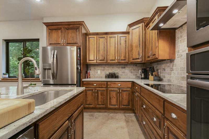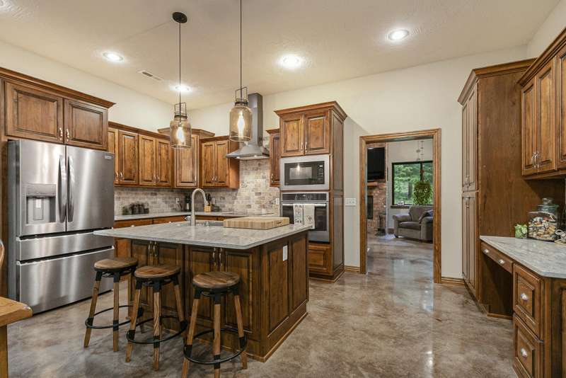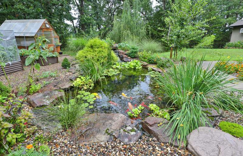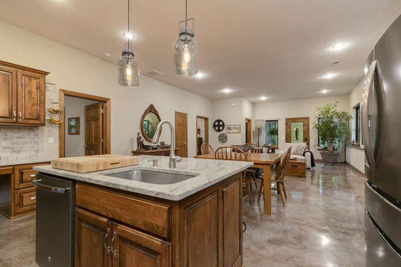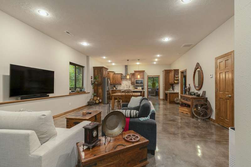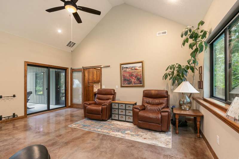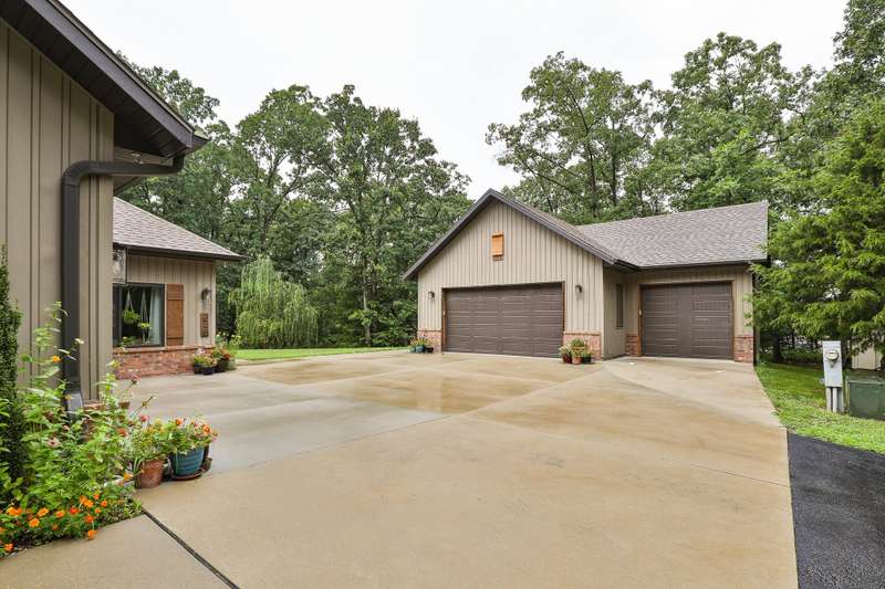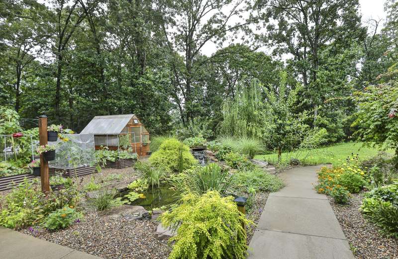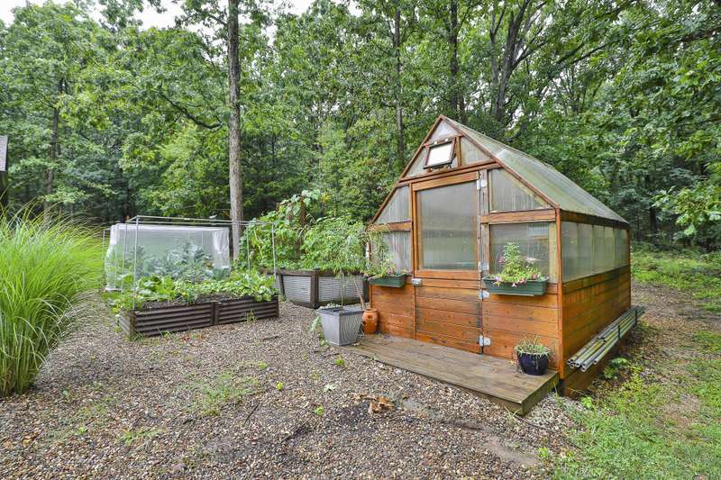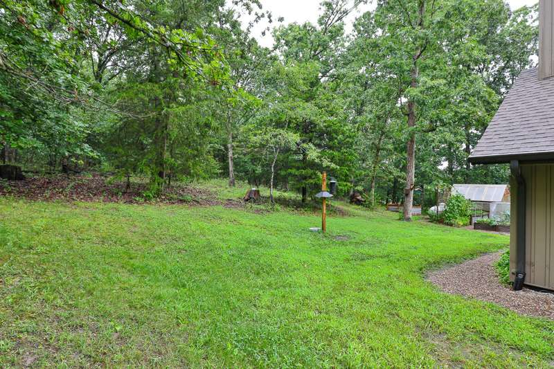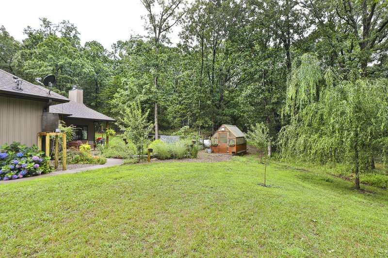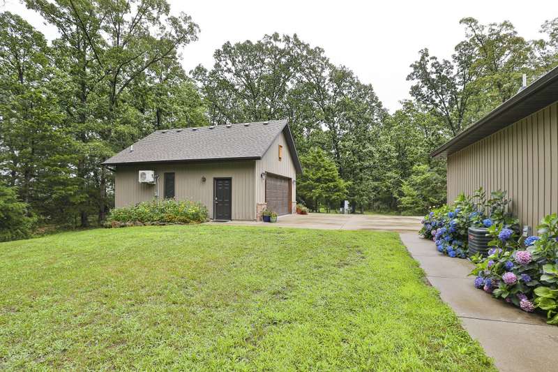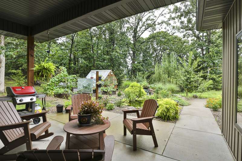 Privacy and Seclusion on 6 acres at the edge of Meadow Woods Subdivision in Fair Grove. Main house has 2 bedrooms and 3 bathrooms and approximately 2,000 Square ft. There are so many quality upgrades including 2x6'' exterior walls, Spray foam insulation, 10' ceilings throughout, radiant floor heating, wood burning fireplace and tankless water heater. There is also a detached structure that has full living quarters. This flexible space can be used a a garage for parking or could be set up as a living space complete with a small kitchen, full bathroom and laundry room. It is fully insulated with a mini split for temperature control. Also on the grounds you will find an amazing and tranquil Koi pond with waterfall as well as a fully fenced gardening area complete with a green house and raised beds. If you are looking for peace and quiet with the convenience of paved road neighborhood access, then look no further. Fair Grove Schools