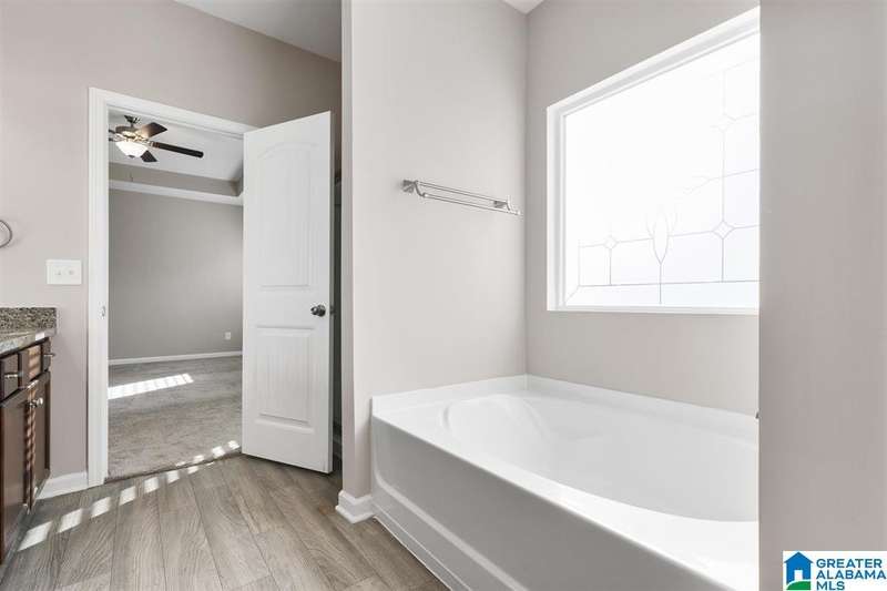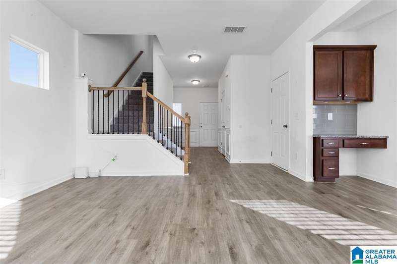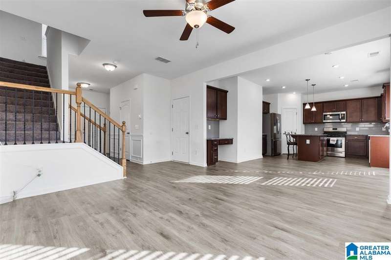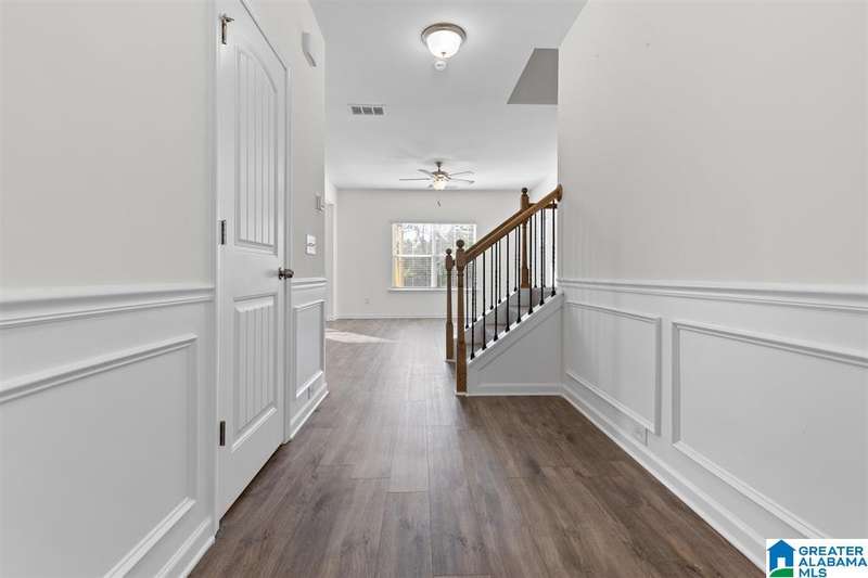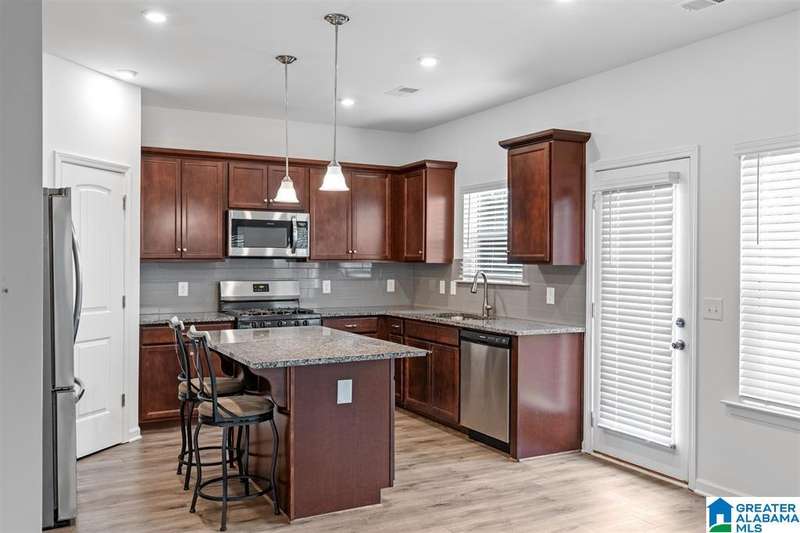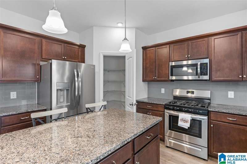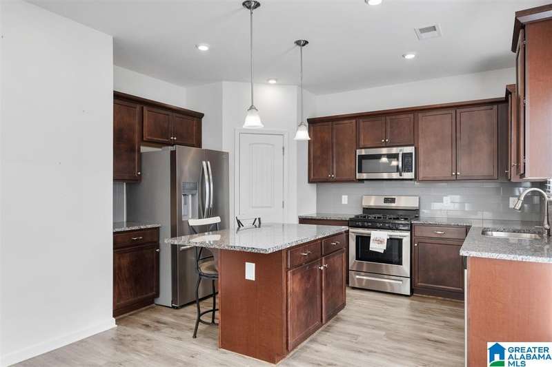 UPGRADES INCLUDE: HARDWOOD LAMINATE THROUGHOUT MAIN LEVEL UPGRADED GRANITE IN KITCHEN AND BATHROOMS WITH TILE BACKSPLASK ISLAND IN KITCHEN CHAIR RAIL IN FOYER DRAWER STACK AND DECORATIVE PRIVACY WINDOW IN MASTER BATH Sellers loss is your gain in this better than new home with wonderful seating area in the backyard for entertaining and backs up to the woods for privacy. Entertainers dream with open floor plan. All bedrooms and Laundry upstairs so no lugging laundry up and down the stairs. Comes with French door stainless refrigerator