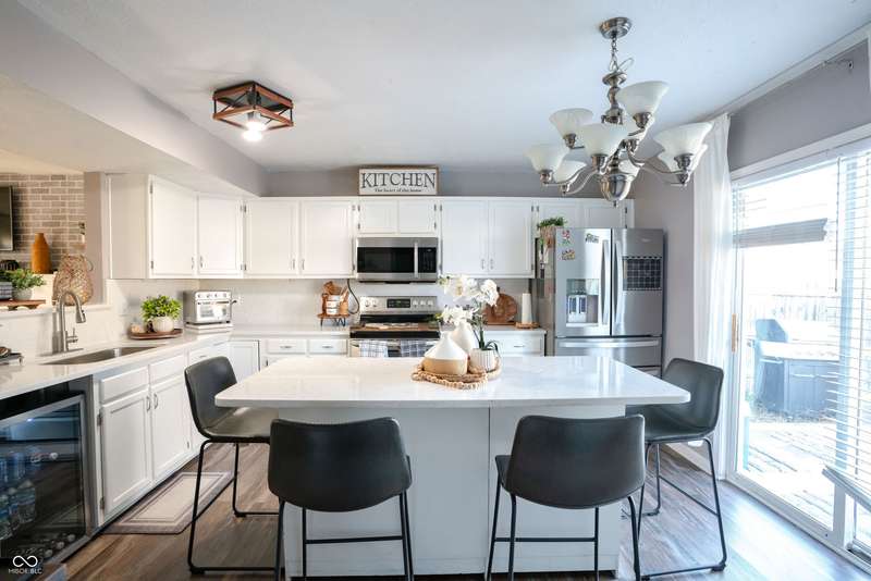 Welcome to this well-maintained 3-bedroom, 1.5-bath home with numerous updates throughout. The main level features abundant natural lighting making the living room warm and cozy. Recently painted walls and cabinetry, newer vinyl flooring, and a modern kitchen with quartz countertops, a functional island for casual dining, a newer stainless steel sink/garbage disposal, and an external vent installed for the microwave hood. Bedroom closets have updated shelving. Additional improvements include A/C and heat added to the garage. The garage has carpet and can be used as additional living space or converted back to car parking. Exterior trim was painted in 2024, and a newer water heater was installed in 2023. The property also offers a spacious fenced backyard with a patio, perfect for cookouts and gatherings.