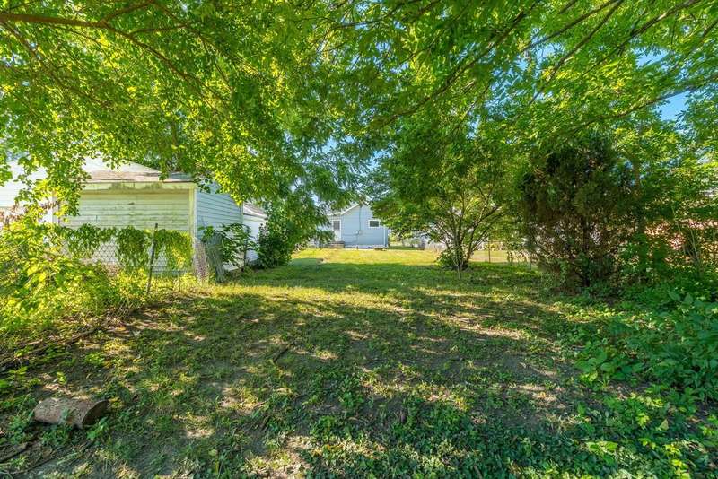 What a great porch to spend your end of summer and fall evenings relaxing on ** This is a ready to move into 2-bedroom bungalow with new paint, LVP flooring, bath, and kitchen with stove and refrigerator included in the purchase ** The evenings can be spent on the back patio around the fire pit ** But if you are needing a workshop be sure and check out the 30 X 24 detached garage at the very back of the L shaped lot