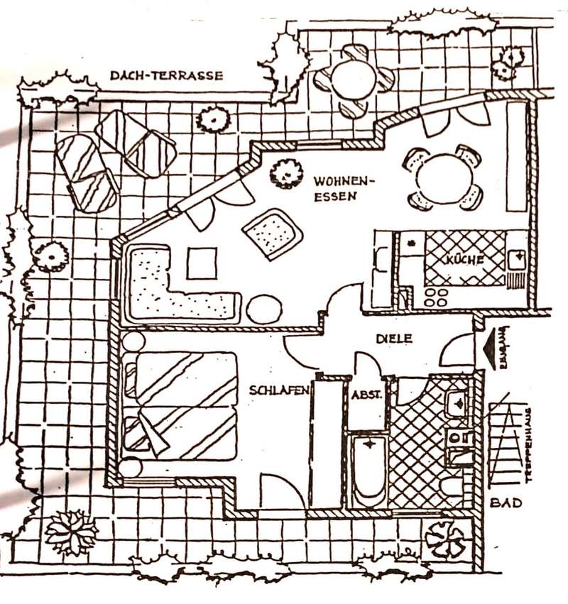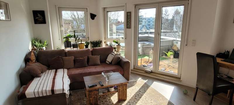 Chic 2-room penthouse - 4th floor with wrap-around terrace - sought-after location - Offenbach /Bieber This bright and friendly 2-room penthouse with wonderful views is located in a well-kept apartment building with 8 parties built in 1995. On a living area of approx. 75.75m² there is an entrance hall, a practical storage room, a daylight bathroom, a bedroom, an open kitchen and a living/dining area with access to the roof terrace. The highlight is the spacious living/dining area with access to the terrace, which is a wonderful place for communication thanks to the open kitchen design. Floor-to-ceiling windows lend the apartment additional sunny transparency. The apartment is fitted with laminate flooring, the wet rooms have tiled floors. Naturally, a parking space is available in the building's own underground garage. The property is rented out, ideal for the investor with foresight, for the discerning single or the young couple who want to combine the advantages of a convenient location at the gates of the Rhine-Main metropolis of Frankfurt with lifestyle and a view of the countryside.