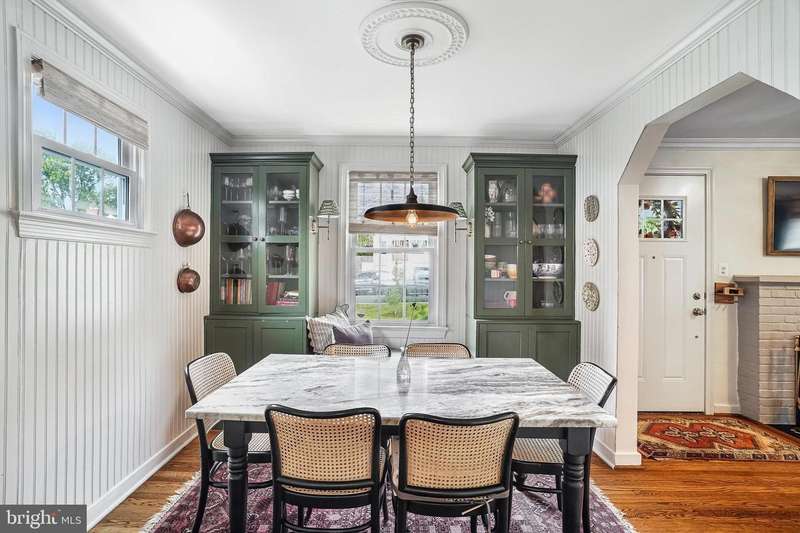 OPEN SATURDAY SEPTEMBER 27, 2-4 pm. This charming Cape Cod in the Hillwood subdivision offers a blend of classic design and modern amenities. With 3 bedrooms all on the main floor, and 2 full bathrooms, the recent updates and stylish interior make this a fall in love home... at a great price point to own a home just a few blocks from Falls Church City. Azalea Park is 2 blocks away. Features of the home include an upgraded kitchen with refaced cabinets, updated countertops, and a new SMEG stove 2025. Dishwasher 2022 and refrigerator 2024. Thoughtfully remodeled bedrooms were altered in 2024 allowing for a larger primary with built in cabinets, drawers and wardrobe space. The other bedrooms also have built in drawers and shelving. In addition there is tasteful soft lighting, and cozy wood floors throughout this main level. Enjoy the warmth of a wood-burning fireplace/firebox with blower in the inviting living area, complemented by a dining area, again with custom built in cabinets, perfect for gatherings. The walkout basement comprises of an office/occasional bedroom, rec room and a good size storage room. The ceiling tiles were replaced with drywall on this level, and new ceramic tile flooring was installed in 2021. There is a dedicated laundry /mud room with a dog shower. The upper level has a second office and play room: ideal additional versatile living or storage space. The exterior comprises of a picturesque side balcony for morning coffee off the kitchen, and a large rear patio that allows you to enjoy the beauty and relaxation of the private fenced backyard. Expansive lawn for games and a recent shed was installed approximately 4 years ago for your bicycles or gardening tools and supplies and outdoor cushions. (2nd small shed and hose attachment on side of house do not convey). The front yard has been newly landscaped in the last 3 months and there is a driveway for parking up to 2 cars for off street parking. New HVAC system 2023. New spray foam under roof space 2024. Replacement windows. Located in a vibrant community, residents benefit from nearby parks, Falls Church City amenities, library, community center and award winning farmers market. New Whole Foods in Falls Church City is a 0.7 mile away. Short distance to Fairfax Hospital and the beltway. East Falls Church metro approx 1 mile, W&OD Trail also 1 mile away. Don't miss this opportunity to own a charming home in a wonderful location! Open Saturday Sept 27, 2-4 pm