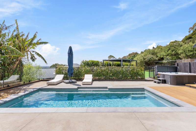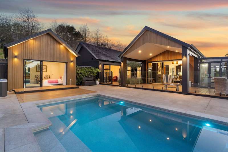 HIGHLY MOTIVATED SELLERS - READY TO RELOCATE Quality built by Build with Titus less than four years ago, this 240 square metre (approx) Axon Panel and Cedar constructed home is located on 3,124 square metres with a flat to contoured gradient. Recently installed electric gates open to a concrete driveway leading to a spectacular architectural home. Its sleek lines and refined form create a refreshingly unique residence where effortless sophistication flows from room to room, spilling outdoors to resort-style entertaining. Covered decks and open air patios wrap around the family living areas and master suite, connecting seamlessly with the heated, north facing mineral pool and its expansive alfresco surrounds. The extras are all here, feature LED lighting, Low-E double glazing, pitched and 2.55m ceilings, data cabling, under-floor heating in the bathrooms. Attractive light-toned timber floors grace the high traffic areas including the exemplary open plan kitchen, an entertainer's delight with engineered stone benchtops, glass splash-backs, waterfall bench and breakfast bar, abundant soft close cupboards and drawers, a 900mm Smeg stove and an excellently out-fitted walk-in pantry. To one side an inviting bar stands ready to serve while behind the kitchen a luxurious media room with a hidden door is the perfect place to relax. Picture windows, sliding doors, and bi-folds flood the adjoining dining and family living areas with natural light. A sun-filled glass conservatory off the living area provides an inviting space to relax and enjoy the glorious countryside views, while also opening out to picturesque dining and supreme entertaining. Making its own artistic statement, the wood storage alongside the full-height built-in fire is both attractive and functional. Four bedrooms include the sun-drenched master with a window wall opening out to one of the numerous decks and those tranquil views. This incorporates an ensuite with wall-hung vanity, under-floor heating, a super-sized shower and an outstanding walk-in robe with make-up station. The further three light-filled bedrooms share a large family bathroom, also with under-floor heating and wall-hung vanity, plus a glass + tile shower and a separate bath. There's a spacious office, a separate powder room with underfloor heating and a laundry with built-ins which shares the large double lock up garage. Outdoors, the pool house includes a bathroom, storage, and a rumpus or studio room, providing versatile additional space. There’s also a wood shed, a pump shed, and a garden shed positioned beside the fully fenced heated mineral pool with its stylish deck and patio recreational surrounds. The perfect relaxation destination! With flair to spare this indoor-outdoor exhibitionist complete with resort amenities has it all! • 4 year old 240m2 (approx) elevated home on 3124m2 • Serene views across surrounding rolling countryside • LED lighting, Low-E double glazing. Data cabling • Stunning open plan living. Picture windows, sliding doors & bi-folds • Entertainer's dream kitchen & walk-in pantry. Bar. Media room • Wrap around covered decks & al fresco patios. Glass conservatory • Adjoining poolside recreation, Expansive leisure surrounds • Sparkling heated fully fenced mineral pool • Pool house with bathroom, storage, & rumpus or studio room • Sumptuous master floor under-floor heated ensuite, walk-in robe, patio • + 3 bedrooms with built -in robes. Floor heated family bathroom • Powder room with underfloor heating • Laundry + built-in storage incorporated in garage • Double lock up garage/marine carpet. Extra parking for boat/caravan etc. • Alarm system. 2 x 25000L water tanks • 1.9km to Ararimu School / 21.3km to ACG Strathallan School • 9.3km to motorway access at Ramarama • 37.3km to Auckland Airport / 48.7km to Auckland CBD Auction: 177 King Street, Pukekohe (Branch Office) on Thursday 20 November 2025 at 2:00PM (unless sold prior)