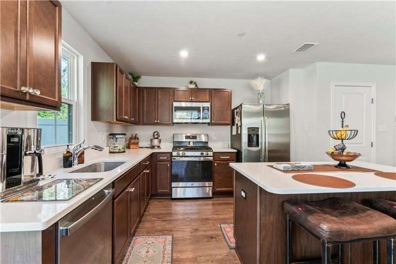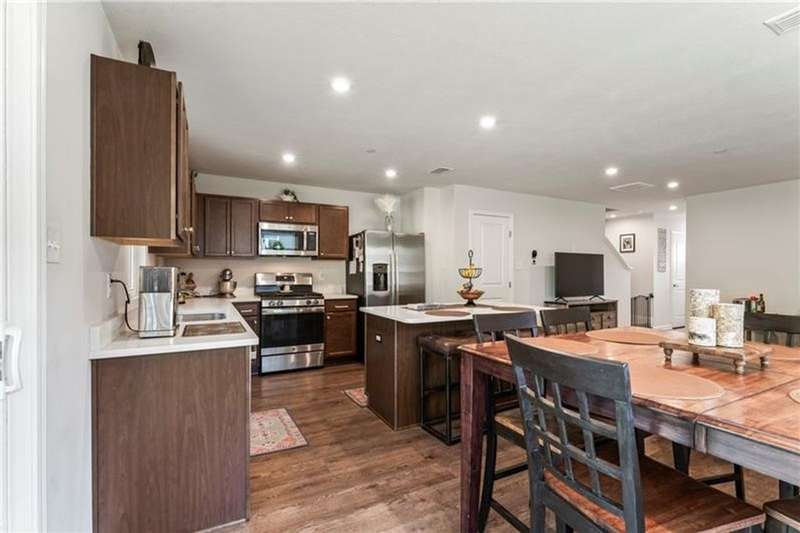 Welcome to the sidewalk community of Chippewa Trails! Enjoy the large yard included with this 2-story, end unit townhouse. Quality and Style! 3 bedrooms. 2.5 baths. Lawn care included in HOA. Maintenance free living! The open-concept main floor has luxury vinyl plank flooring and includes the spacious living/family room, natural light filled dining room, gourmet kitchen, powder room and pantry. The beautiful maple kitchen has quartz counters, upgraded stainless appliances and a large center island. Master suite includes full bath with double bowl vanity and walk-in closet with natural light and pull-down attic storage. 2nd floor laundry. Sliding glass door leads to the private back yard. Integral garage with opener plus the driveway is suitable for 2 cars.