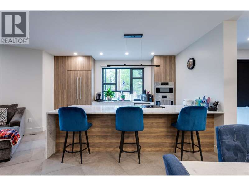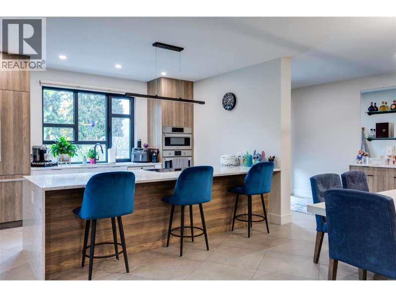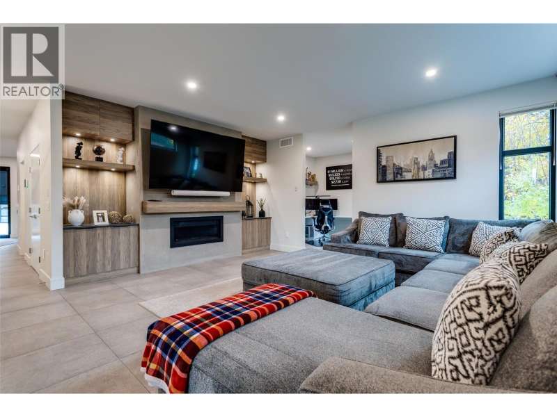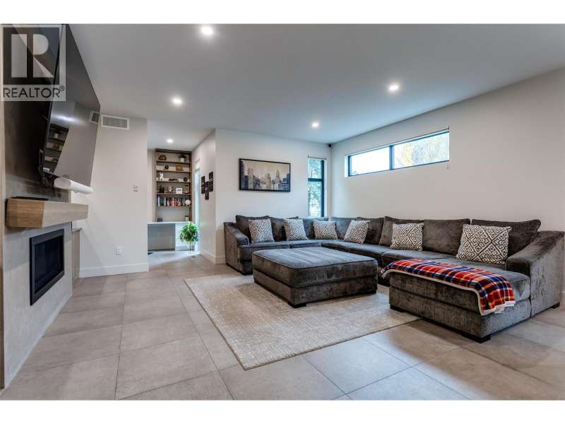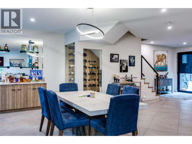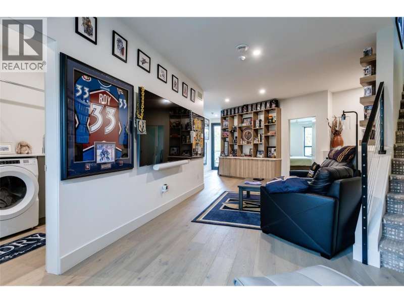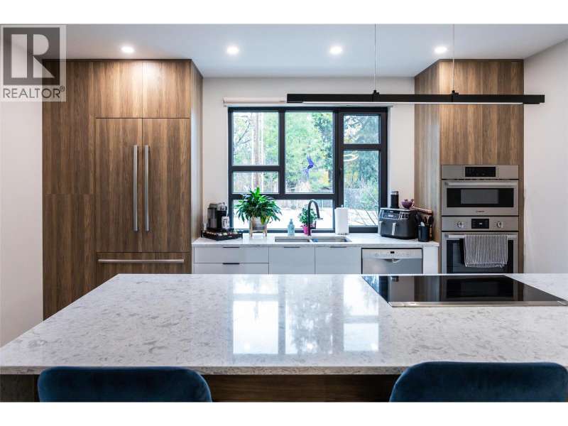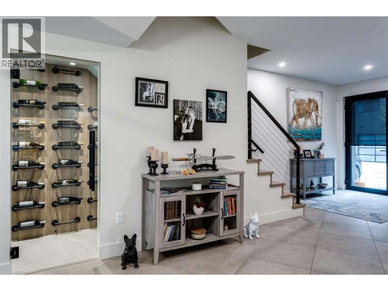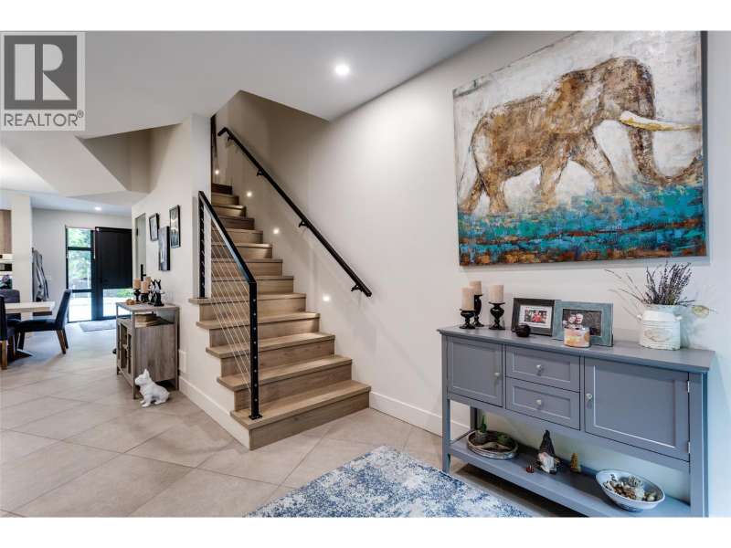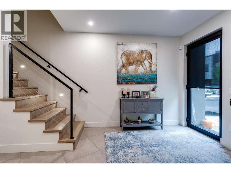 This luxury end unit townhome in Kelowna’s desirable Lower Mission offers an exceptional blend of elegance, comfort, and location. Just steps from beaches, wineries, top-rated schools, grocery stores, and vibrant restaurants, it’s perfectly positioned for both convenience and lifestyle. Inside, you’ll find three spacious bedrooms, three bathrooms, and a dedicated office, all enhanced with custom built-in cabinetry. The open-concept living space features 9-foot ceilings and a chef-inspired kitchen outfitted with Bosch appliances, including a wall oven and cabinet-panel fridge/freezer, quartz countertops, a wine cooler, floor-to-ceiling cabinetry, and a waterfall quartz island, wine cellar & bar. The main floor showcases partially heated tile floors, a striking clay fireplace, custom built-ins, and modern cable stair railings. Upstairs, the primary suite boasts a spa-like 5-piece ensuite with a floating double vanity, soaker tub, custom tiled shower, heated tile floors, and backlit mirrors with built-in speakers. Additional highlights include a generous 4-foot crawl space for ample storage, a double garage with epoxy flooring, a double driveway, and a fully furnished 715 sq ft rooftop patio—ideal for entertaining or relaxing under the Okanagan sun. This home is a rare opportunity to enjoy high-end living in one of Kelowna’s most sought-after neighborhoods. Over $200,000 in upgrades (id:58403)