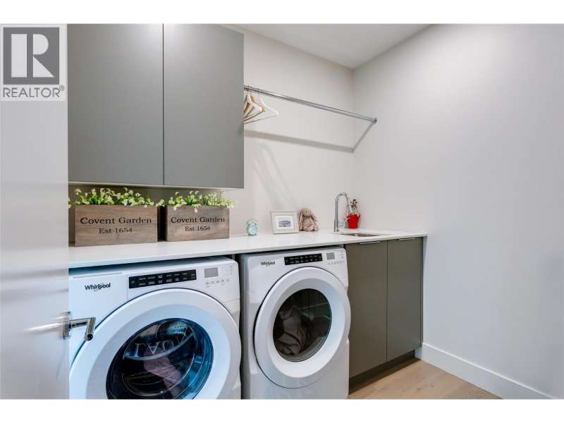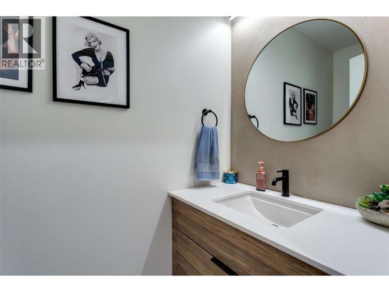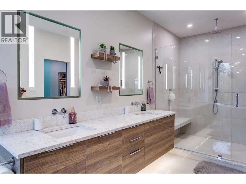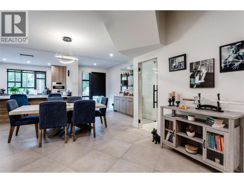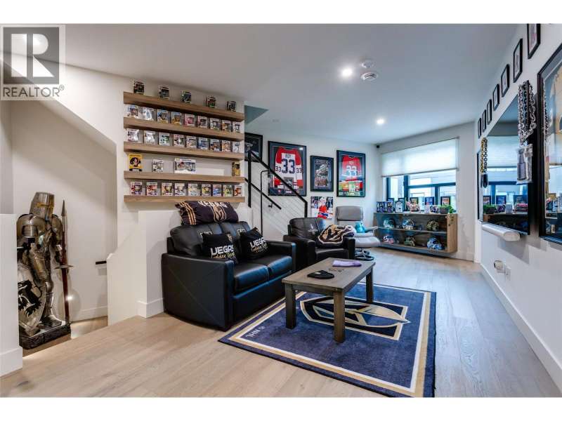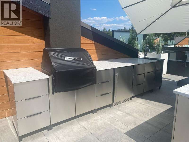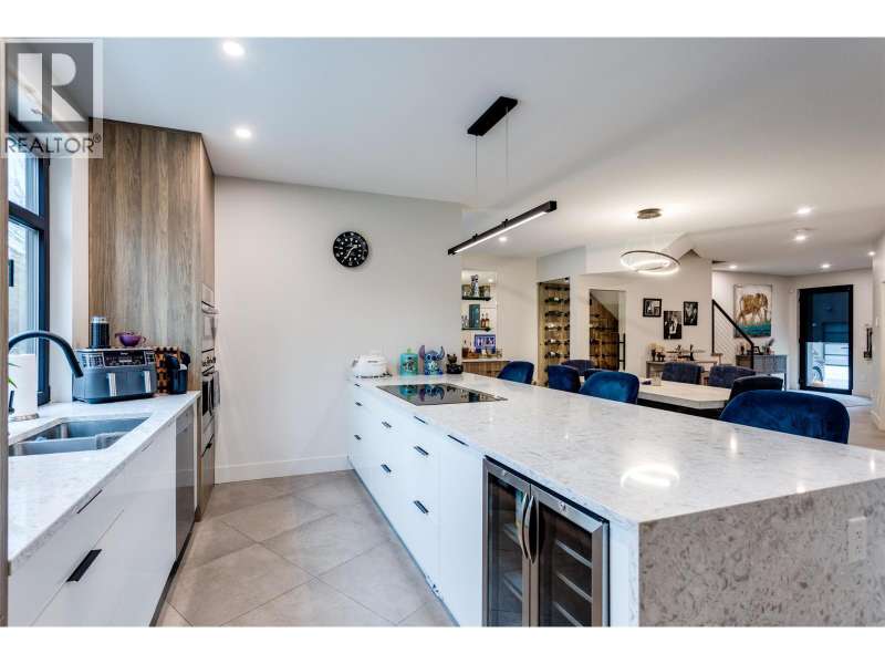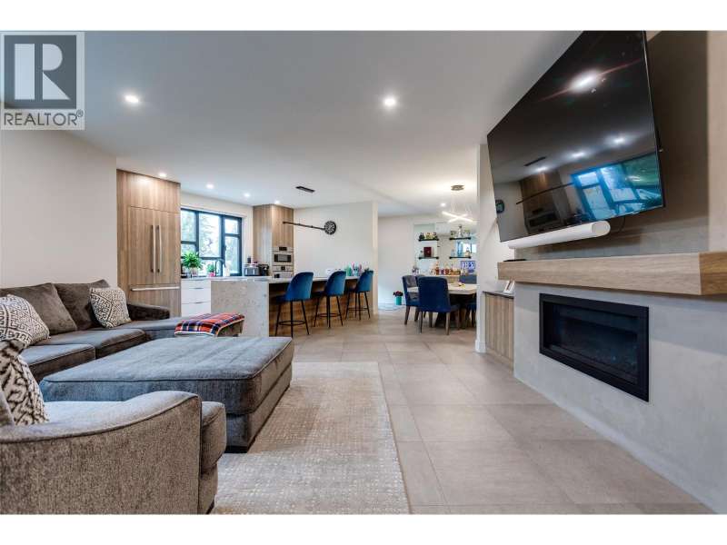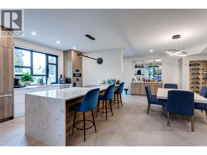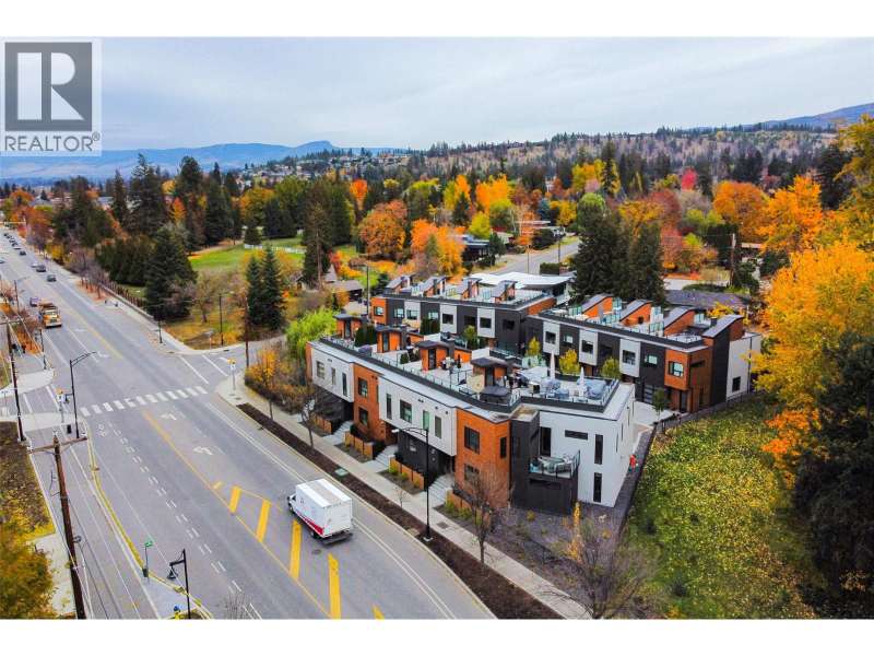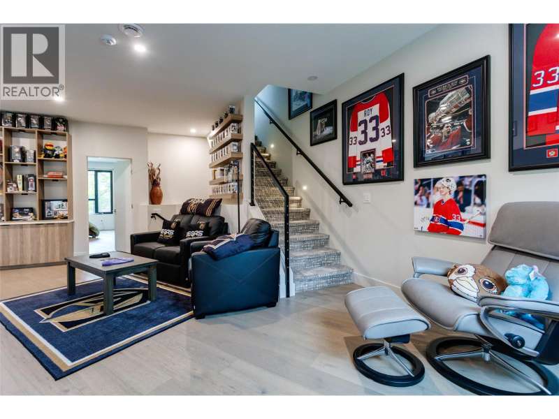 This luxury end unit townhome in Kelowna’s desirable Lower Mission offers an exceptional blend of elegance, comfort, and location. Just steps from beaches, wineries, top-rated schools, grocery stores, and vibrant restaurants, it’s perfectly positioned for both convenience and lifestyle. Inside, you’ll find three spacious bedrooms, three bathrooms, and a dedicated office, all enhanced with custom built-in cabinetry. The open-concept living space features 9-foot ceilings and a chef-inspired kitchen outfitted with Bosch appliances, including a wall oven and cabinet-panel fridge/freezer, quartz countertops, a wine cooler, floor-to-ceiling cabinetry, and a waterfall quartz island, wine cellar & bar. The main floor showcases partially heated tile floors, a striking clay fireplace, custom built-ins, and modern cable stair railings. Upstairs, the primary suite boasts a spa-like 5-piece ensuite with a floating double vanity, soaker tub, custom tiled shower, heated tile floors, and backlit mirrors with built-in speakers. Additional highlights include a generous 4-foot crawl space for ample storage, a double garage with epoxy flooring, a double driveway, and a fully furnished 715 sq ft rooftop patio—ideal for entertaining or relaxing under the Okanagan sun. This home is a rare opportunity to enjoy high-end living in one of Kelowna’s most sought-after neighborhoods. Over $200,000 in upgrades (id:58403)