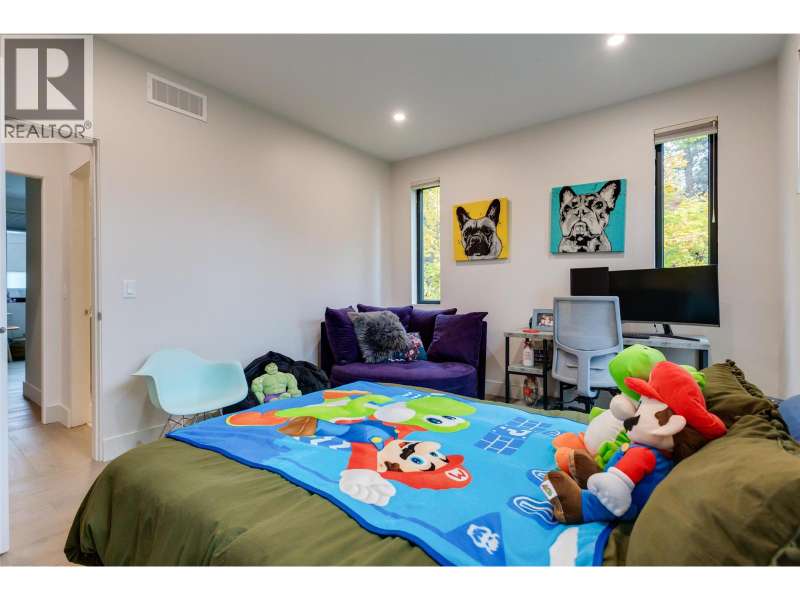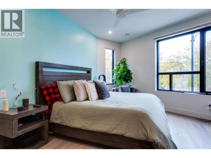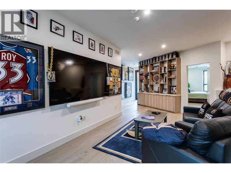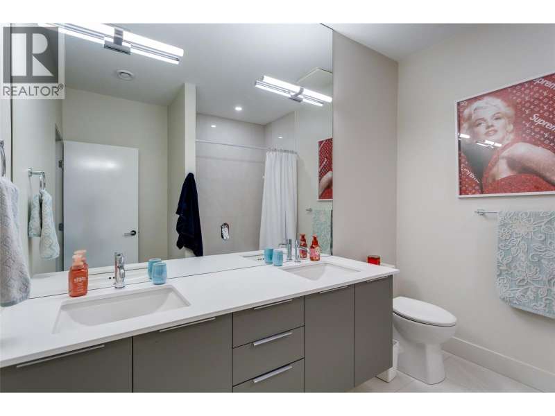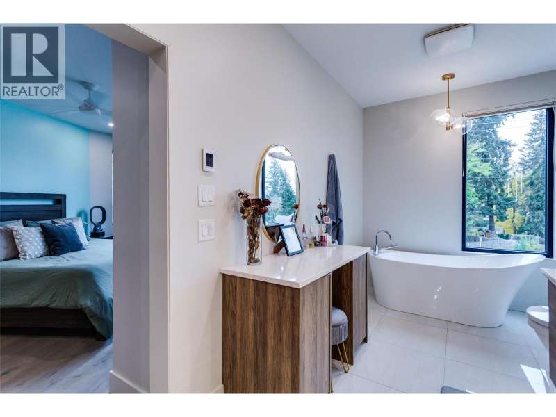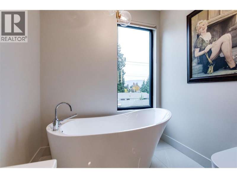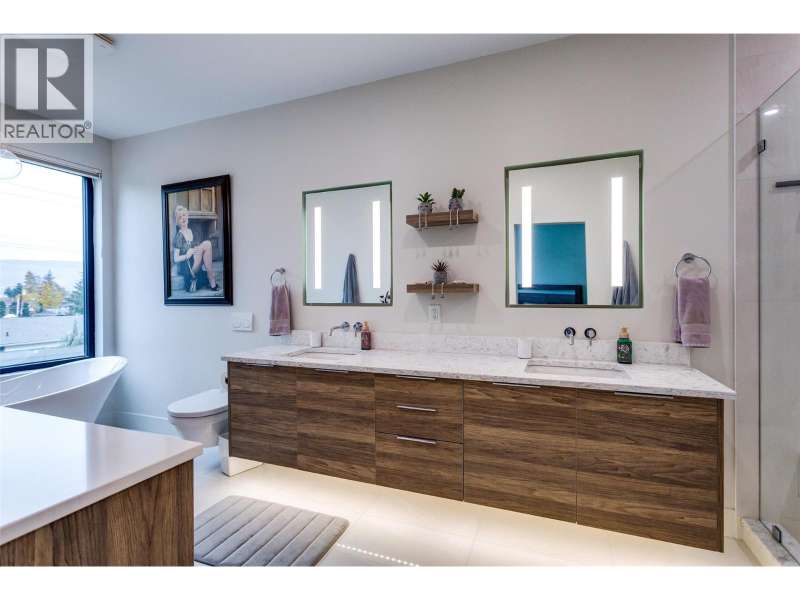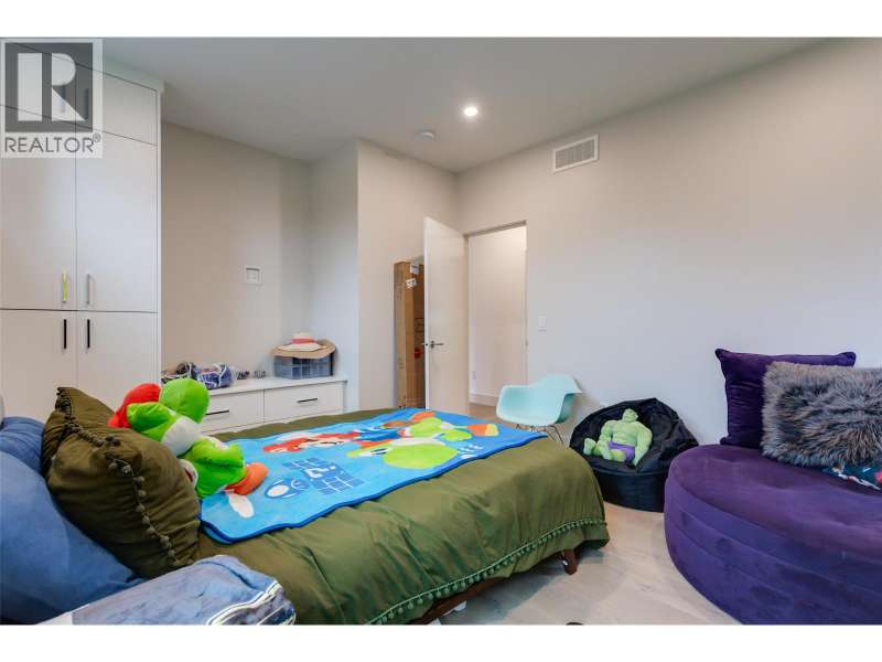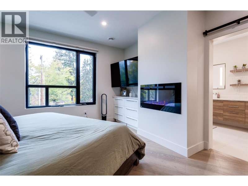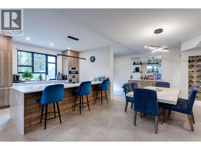 This luxury end unit townhome in Kelowna’s desirable Lower Mission offers an exceptional blend of elegance, comfort, and location. Just steps from beaches, wineries, top-rated schools, grocery stores, and vibrant restaurants, it’s perfectly positioned for both convenience and lifestyle. Inside, you’ll find three spacious bedrooms, three bathrooms, and a dedicated office, all enhanced with custom built-in cabinetry. The open-concept living space features 9-foot ceilings and a chef-inspired kitchen outfitted with Bosch appliances, including a wall oven and cabinet-panel fridge/freezer, quartz countertops, a wine cooler, floor-to-ceiling cabinetry, and a waterfall quartz island, wine cellar & bar. The main floor showcases partially heated tile floors, a striking clay fireplace, custom built-ins, and modern cable stair railings. Upstairs, the primary suite boasts a spa-like 5-piece ensuite with a floating double vanity, soaker tub, custom tiled shower, heated tile floors, and backlit mirrors with built-in speakers. Additional highlights include a generous 4-foot crawl space for ample storage, a double garage with epoxy flooring, a double driveway, and a fully furnished 715 sq ft rooftop patio—ideal for entertaining or relaxing under the Okanagan sun. This home is a rare opportunity to enjoy high-end living in one of Kelowna’s most sought-after neighborhoods. Over $200,000 in upgrades (id:58403)