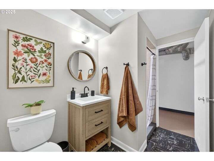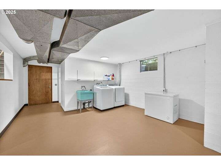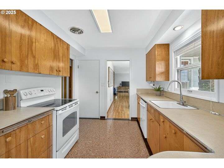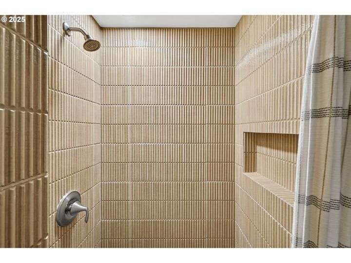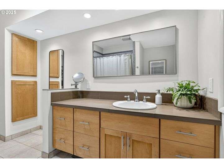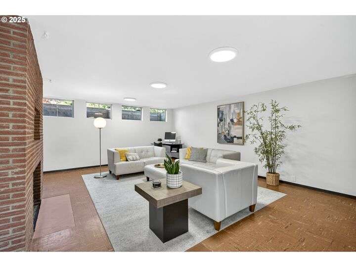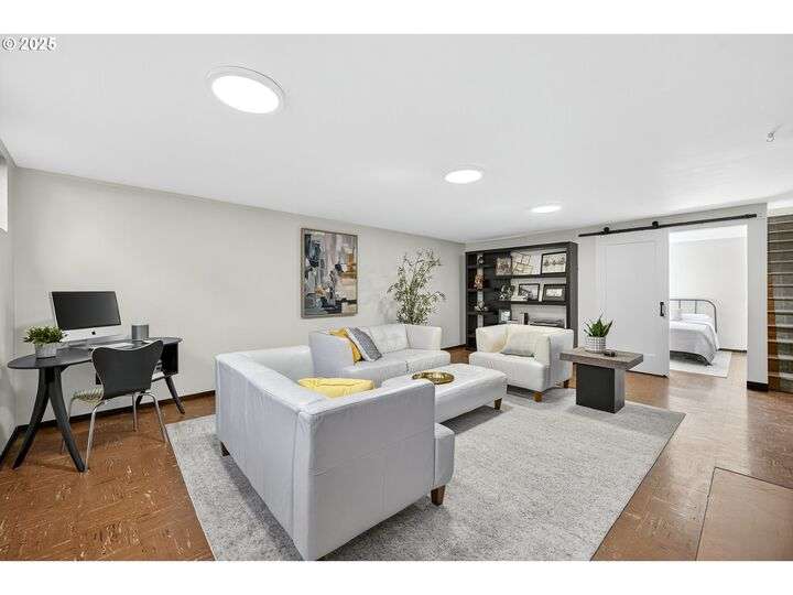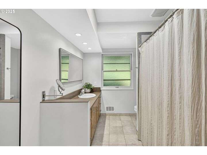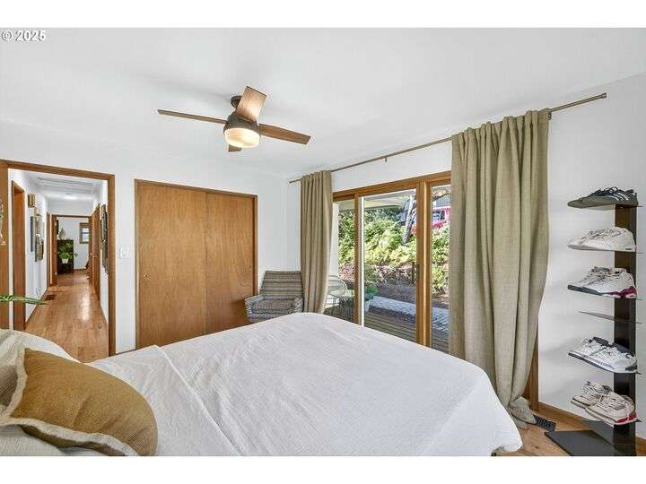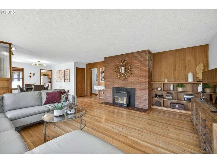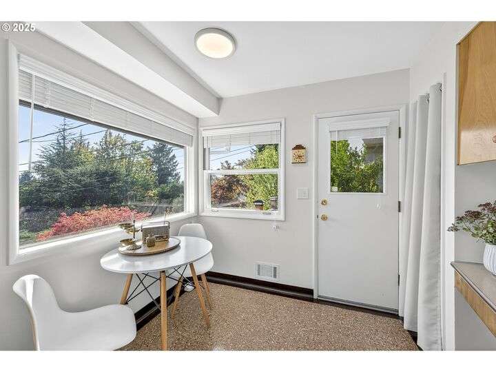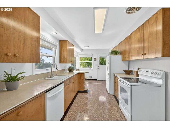 There's so much to love about this mid-century gem in Portland's sought-after Hillsdale neighborhood! Set up off the street, on a corner lot w/ beautiful, mature landscaping on all sides, this home enjoys great privacy and natural light. The living room is unlike any other. It's incredibly spacious, w/ fun, mid-century built-ins and design details, beautiful hardwood floors and lots of great, big, picture windows. The floor plan and positioning of this home is pretty perfect, too. The main floor puts living, dining and kitchen at the front of the home with 3 bedrooms and a full bathroom in the back and easy access to the backyard and patio from the kitchen and one of the bedrooms. Every window enjoys attractive views of the mature, variegated landscaping that surrounds the house. The light, bright lower-level has nice, tall ceilings and includes a big family room, 4th bedroom, 2nd full bathroom and great storage. Well cared for over the years, with valuable system improvements and thoughtful updates aligned with mid-century character and design. Recent updates include: lower-level bathroom remodel (incl new plumbing, shower pan, shower tile, and vanity - '25), new main water line ('25), new electric water heater ('24), new electric panel ('24), EV charging outlet ('24), generator outlet ('24), and new sewer line ('22). The backyard features a spacious covered patio off of the kitchen for year-round use and enjoyment, a covered deck off of one of the bedrooms, blueberry bushes, a Japanese nashi pear tree, blooming camellia bushes and so much more! With its super central location, this home enjoys several, quick commute options into downtown, NW, Lake Oswego and Beaverton. OHSU is just up the hill and a network of quiet, forested, nature trails minutes away. [Home Energy Score = 3. HES Report at https://rpt.greenbuildingregistry.com/hes/OR10134883]
