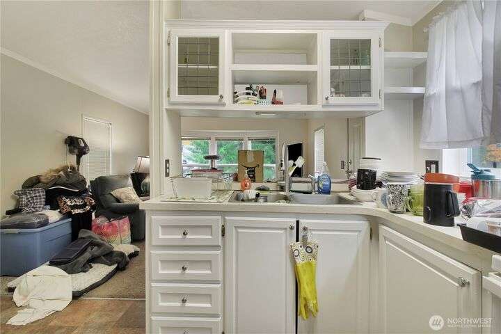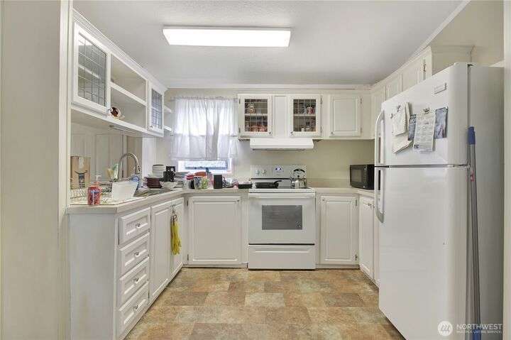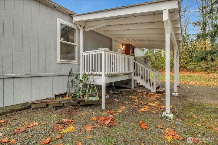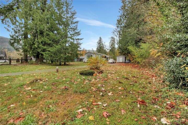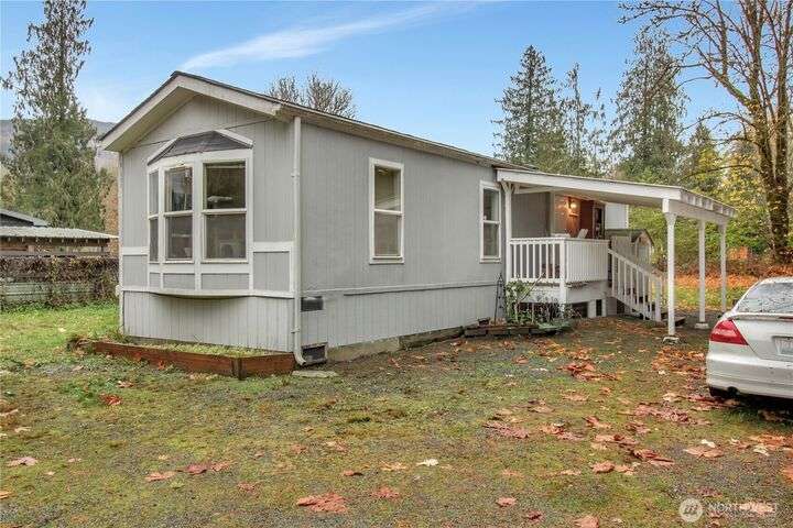 Cute and affordable 2 bed 1 bath manufactured home on .57 flat usable acres. Towering evergreens mountain views and river access just a block away. Located on a quiet paved street. Front and backdoor covered decks. Handy storage building with covered carport. Move in ready.