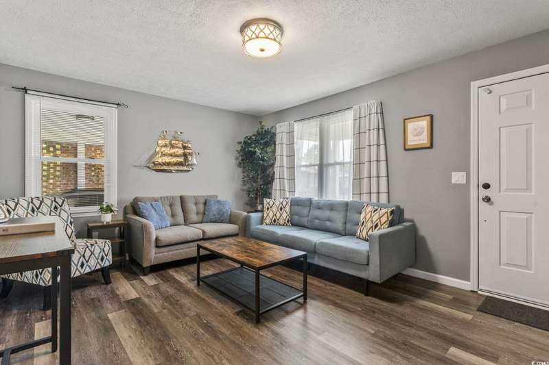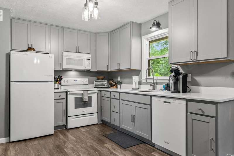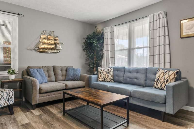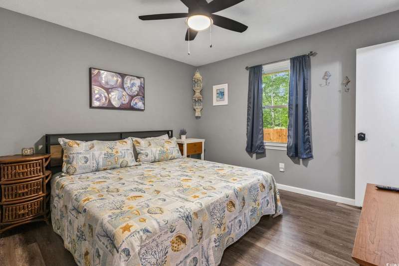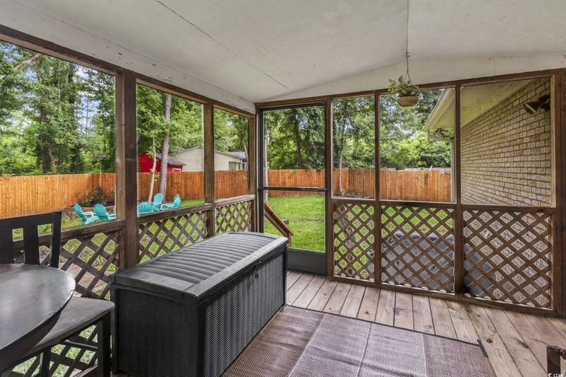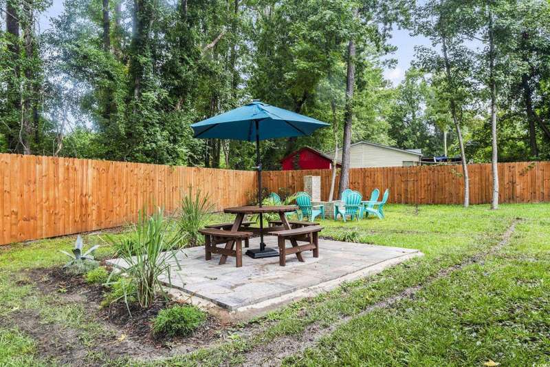 Burcale Street- a beautifully renovated, move-in-ready home tucked away on a quiet cul-de-sac just 10 minutes from the beach and close to Arrowhead Golf Course. Perfect for first-time buyers, this charming 3-bedroom, 1.5-bath home takes the worry out of homeownership with major updates already completed: a new metal roof, remodeled kitchen with cabinets, stove, refrigerator, and microwave, plus brand-new LVP flooring throughout the entire home - all completed in 2022. The hot water heater was just replaced in 2025. All furniture is included. Even the washer and dryer are included, saving you upfront costs and making the move-in process simple. Enjoy the spacious screened-in porch overlooking a large private backyard with a 6’ privacy fence, a patio area, a built-in fire-pit, and a new irrigation system (2024). With NO HOA, you’ll have the freedom to park a boat, start a garden, or even plan for a future pool. A carport and shed provide extra storage, making this home as practical as it is charming. Affordable, updated, and low-maintenance, this property is an excellent opportunity for first-time buyers or anyone looking for a wise investment near the coast. (Short-term and long-term rentals are allowed.)