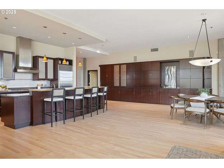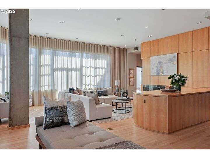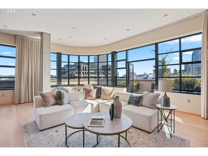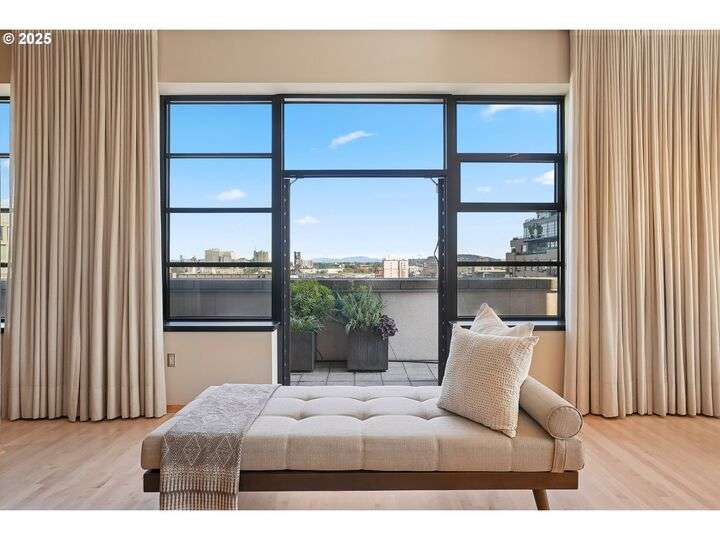 One of THE BEST penthouses in Portland. This southeast corner sits on the top floor & offers mountain views from an almost 1,000SF wrap-around terrace that is accessible from the majority of the interior. If outdoor space is the dream, this is the one! The Art Deco architecture of The Gregory gives privacy to this special corner. Very high ceilings & newly refinished maple floors run throughout the penthouse. The enormous great room has space for a large dining area & multiple sitting areas that are thoughtfully divided by a custom storage & entertainment credenza. Watch TV by the gas fireplace. An oversized island with an eating bar separates the gourmet kitchen. Two very large bedroom suites sit at opposite ends of the penthouse. The primary suite has its own dressing room, walk-in closet, marble bath, & separate library & TV area that connects to a large private terrace. The custom office features a leather wall, built-ins, & skylights. The guest suite has built-in storage & outdoor access. The laundry room offers even more storage, a sink & secondary access to the common hall. Two individual parking spaces & a separate storage room that is too big to believe make this an easy lifestyle. The building has a large common terrace on the 5th floor with tables, lounge seating, & BBQs. There is easy access right outside the building to markets, restaurants/cafes, galleries, cultural events & the streetcar on both sides of the building. Long-time building manager, loved by the community, is onsite Monday-Friday. New roof on the building in 2022.