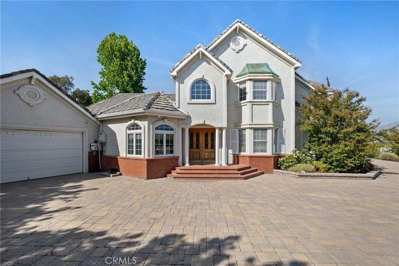 Welcome to an exceptional property in the coveted Shadow Hills neighborhood, offering one of the area's finest indoor and outdoor living experiences, with both a beautiful home and investment potential. It features 3 bedrooms, 2 bathrooms, 2,823 sq ft of living space, and a 24,075 sq ft lot with a 5-car garage. This gated, private, fully fenced home is situated on a cul-de-sac. As you enter through the expansive paver driveway, which can comfortably accommodate up to 10 cars, your attention will be immediately drawn to the professionally landscaped and hardscaped yard with a fully sprinklered system. The owners have spared no expense in creating a beautiful and functional outdoor space, adding to the exclusivity and tranquility of the property.The home boasts a well-designed floor plan, showcasing craftsmanship and attention to detail throughout. The main level features a formal living room and dining room, as well as an oversized chef’s kitchen with limestone floors, an island, and abundant cabinetry. Adjacent to the kitchen is a family room with a fireplace and oak French doors that lead directly to the expansive backyard. Upstairs, the spacious master bedroom and bathroom include a sitting area and private balcony with stunning views. Two additional bedrooms and a bathroom on the main level offer comfort and convenience for family members.The expansive backyard truly sets this home apart, offering ample space for various possibilities, including a 4-car oversized garage that can be converted into a Junior Accessory Dwelling Unit (ADU) for additional income. Additionally, there is also ample space to build another ADU or multiple units under SB9, or to utilize the existing horse stalls – the potential here is endless.