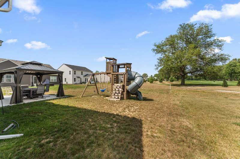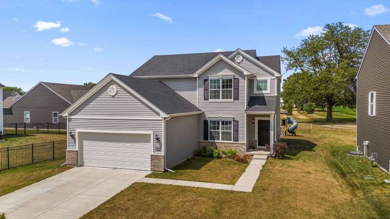 Why wait to build??? Better than New... this stunning 2 story home with FINISHED basement on a golf course lot is just 2 years old and ready for new owners. The open concept main floor features 9' ceilings, neutral paint, and vinyl plank flooring throughout. Upgraded cabinets with stainless appliances, pantry, island, and large dining area completes the kitchen. Living room provides gorgeous gas fireplace and plenty of natural light. 1/2 bath, office space, and laundry room with added cabinets and storage leading out the insulated and drywalled 2 car garage. Upstairs the main bedroom has a walk in closet and private bath with double vanity and shower. 3 good sized additional bedrooms upstairs with ample closet space and a full bath. The basement is newly finshed with epoxy floors, 2nd living area, workout area with egress window, and storage space. Outside you'll find a 22x16 patio with gazebo looking out on the golf course. Located on a quiet street but just minutes away from Youche Country Club, the Crown Point Square, Fairgrounds, & the YMCA.