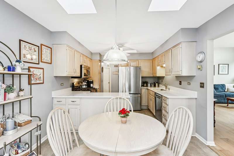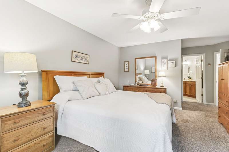 Welcome to this fabulous 3-bedroom, 3-bath Ranch END UNIT townhouse in the scenic Hickory Ridge community of West Elgin! Offering approximately 2,800 sq ft of finished living space plus abundant storage, this home combines the comfort of single-family living with the convenience of maintenance-free amenities. The main level boasts a vaulted great room with a cozy fireplace and Dining Area, a sunny kitchen with a breakfast area that opens to a private deck, and a spacious primary suite with walk-in closet and spa-like ensuite featuring a gorgeous walk-in shower. A second bedroom (ideal for a home office or den), full bath, laundry room, and attached 2-car garage complete this level. A dramatic curved staircase leads to the finished English basement, where you'll find a large family room with second fireplace, recreation room with bar, guest bedroom, full bath, fitness area, and exceptional storage and bonus finished space. Perfectly located just off the Randall Road corridor-only 5 minutes to grocery stores, shopping, and dining, 30 minutes to O'Hare, and 1 hour to Chicago. Surrounded by parks, bike trails, and conveniences, this true GEM offers the feel of a single-family home with lawn care and snow removal included-so you can enjoy your weekends stress-free!