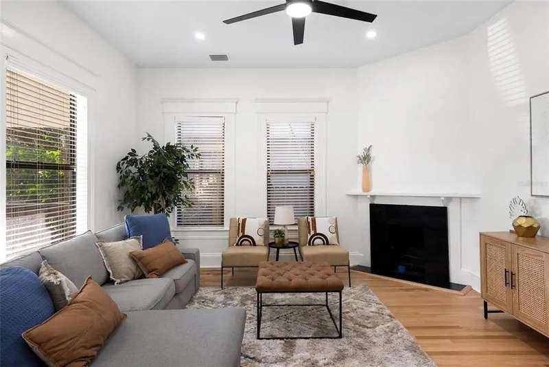 A RARE FIND IN THE HEART OF TAMPA HEIGHTS! This beautifully revived bungalow perfectly blends historic charm with modern comfort in one of Tampa’s most sought-after neighborhoods. Thoughtfully updated throughout, this 3-bedroom, 2-bath home offers warmth, character, and convenience just minutes from Armature Works, Downtown Tampa, Ybor City, and Water Street. From the moment you arrive, you’ll fall in love with the inviting front porch overlooking a picturesque brick-lined street, setting the tone for the charm that continues inside. Step through the front door to find restored original hardwood floors paired with new hardwood additions, blending old and new seamlessly. The home’s two fireplaces anchor the living spaces, creating cozy spots to relax and unwind. The upgraded kitchen features brand-new quartz countertops, new tile flooring, and a modern backsplash, complemented by stainless steel appliances and sleek cabinetry. Both bathrooms have been tastefully updated with refreshed fixtures and finishes that maintain the home’s timeless appeal. Additional highlights include all-new hardware and ceiling fans, fresh interior paint, a newer deck, and major system updates such as a newer roof and AC. The fully fenced backyard with private alley access offers flexibility for parking, entertaining, or future enhancements. Set on one of Tampa Heights’ most charming brick streets, this home combines the character of a historic bungalow with the style and function of a modern renovation. A true Tampa Heights gem — where history, design, and lifestyle come together beautifully.
