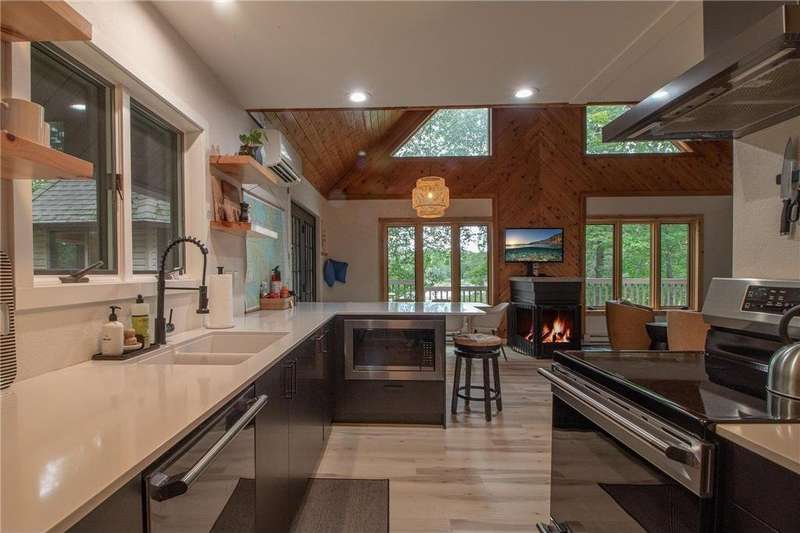 Escape to the Northwoods with this beautifully, completely remodeled 4 BD/2 BA retreat tucked beneath towering pines on 685ft of shoreline on Little Bass Lake. You will find modern updates throughout, open floor plan, 2 fireplaces, charming enclosed gazebo w/hot tub for relaxing in the evenings. This property shines as both a year-round residence or an excellent VRBO Rental opportunity already established. Outside, you'll enjoy the spacious 5.6acre lot, excellent lake for pan fishing, massive pole barn for all your toys and direct access to the ATV heartland. This property offers the perfect blend of entertaining, adventure and relaxation!