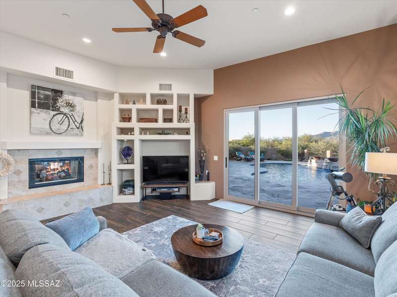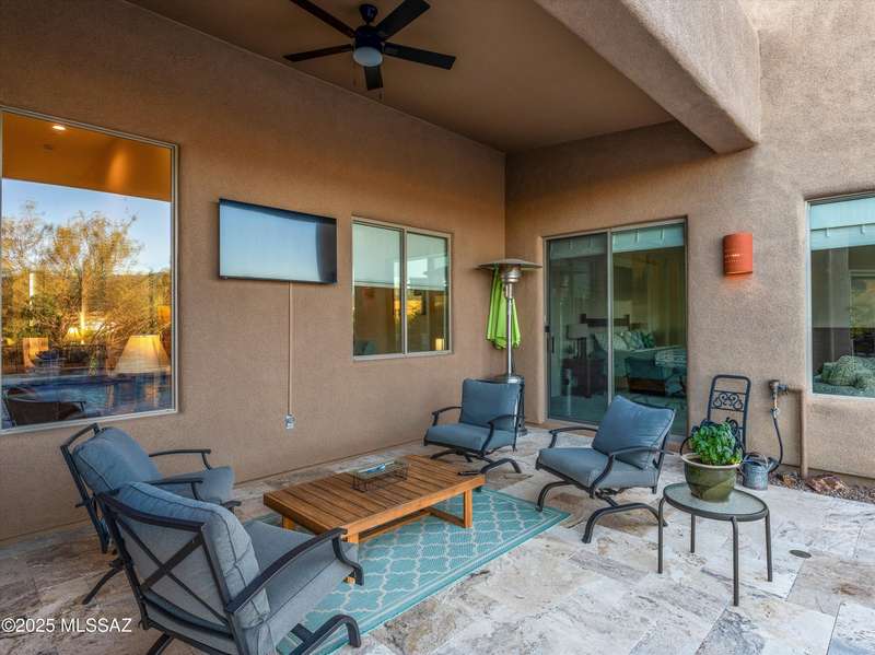Luxurious, resort-style desert living, indoors and out. Nestled in the exclusive, gated Coyote Creek neighborhood, this breathtaking luxury residence offers elegance, comfort and truly impressive outdoor living spaces. Enjoy phenomenal panoramic mountain views from every angle, a brand new oasis-like pool with spa-like water features, and a very spacious travertine pool deck, all completed in 2025. The outdoor space is an entertainer's dream, featuring citrus & fig trees, a cozy fire pit, a welcoming, large front courtyard with fountain, and professional landscaping, irrigation and lighting throughout. Inside, find a brand new custom kitchen, soaring ceilings, light, bright spaces and gorgeous views from large windows. Large 3-car garage with high ceilings and epoxy floor. A must-see!