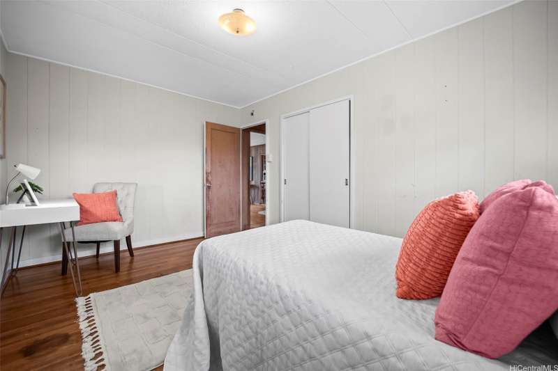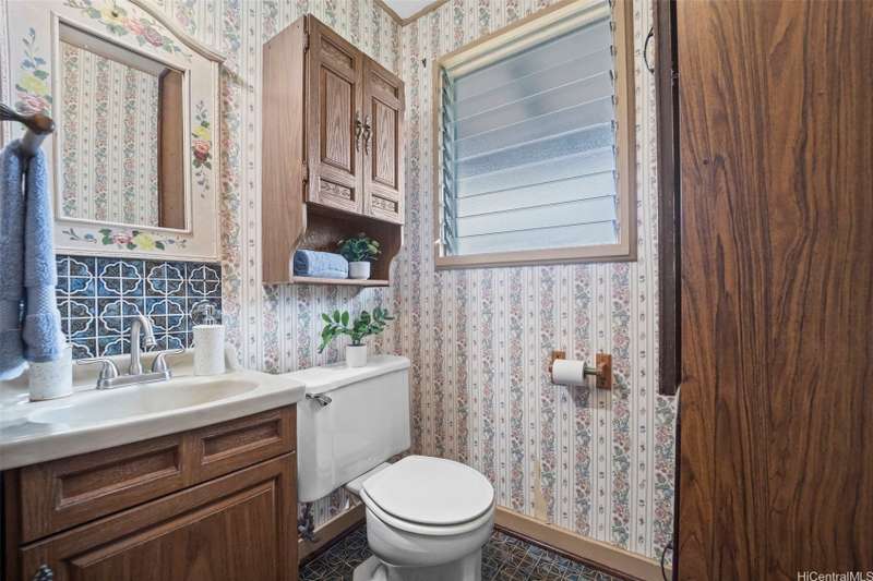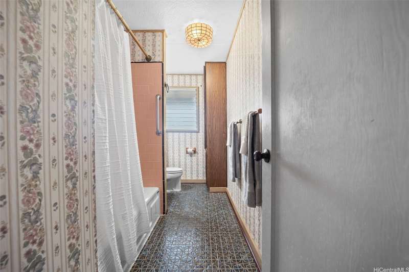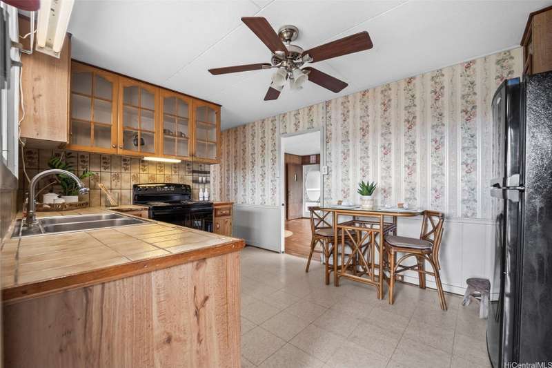 Charming 3-bedroom, 1-bath home in the Keolu Hills neighborhood of Kailua. This property offers classic mid-century character with redwood walls, canec ceilings, and original hardwood flooring. The bright interior provides an open flow between the living, dining, and kitchen spaces, framed by large picture windows that capture mountain and neighborhood views. While the home needs some updating, it's priced to sell and offers a solid foundation for renovation or expansion. A wrap-around grassy yard features mature foliage including ti, plumeria, and heliconia, creating a lush tropical setting. The lower terraced portion of the yard is ideal for gardening, outdoor activities, or future possibilities. Positioned slightly up Keolu Hills, the home enjoys pleasant breezes and a vantage overlooking Enchanted Lake and Kailua town. Conveniently located near Enchanted Lake Shopping Center, local coffee shops, and parks-an excellent opportunity to personalize a well-loved Kailua property.