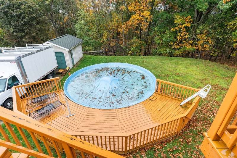 Tucked at the end of a quiet dead-end lane on a double lot, 0.40 acres, this classic split-entry delivers space, privacy, and flexible living. Sunlit bay windows anchor a large living room that flows to a dedicated dining area and a modern kitchen with walkout to a well-kept deck overlooking the above-ground pool and wooded backdrop. With 5 bedrooms and 3 full baths across 2,625 sq ft, the lower level shines as a true bonus: a large bedroom/rec space with a fully functioning kitchenette and full bath?ideal for guests, in-laws, or extended stays. A brand-new, purpose-built hot-tub room adds a spa-like retreat. Heating is efficient hot-water baseboard. Parking and storage abound: an interior access, nicely finished single-car garage, 280 sq ft, that opens to the basement plus a detached single-car garage. A rare blend of indoor versatility and outdoor calm?minutes from everything, yet wrapped in end-of-street privacy. Call now!