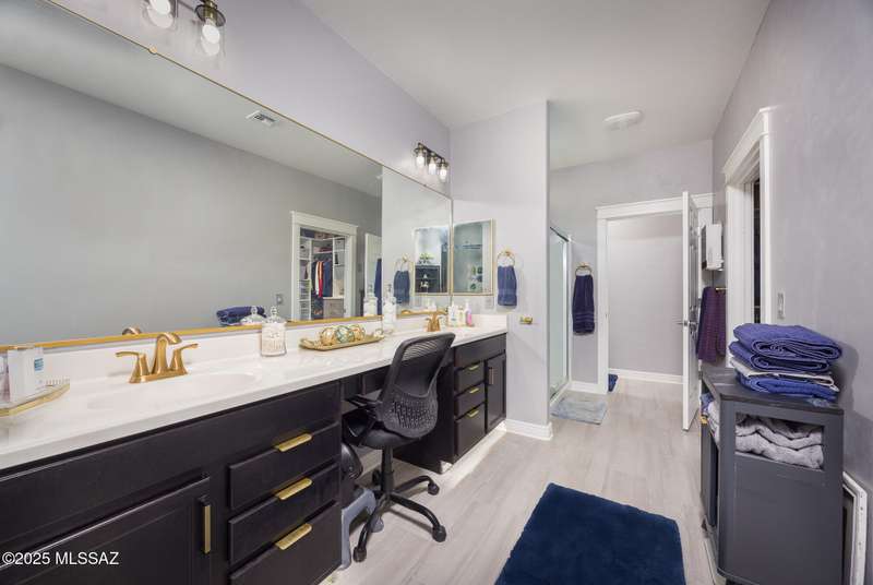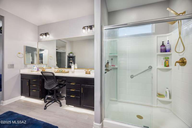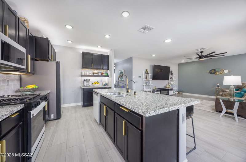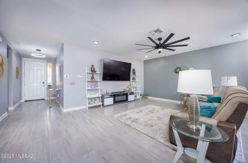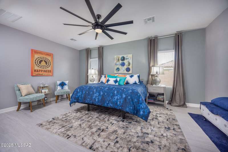 Upgrades galore in gated Saguaro Springs 55+ community.This 1,730 sq.ft 2-bedroom home is packed w/ recent improvements inside & out.The front entry features pavers, directional lighting, brand new security door.Step inside to a completely new kitchen with Samsung smart appliances, stylish backsplash, under cabinet lighting, water filtration system, soft closing cabinets, beverage fridge & large center island.Thru-out the home all new ceiling fans, custom paint, new modern lighting, new baseboards & updated door trim.The guest room has new lighting & custom closets with dresser.Guest bath shines w/ new sink & countertops.Primary suite has new paint, window coverings, upgraded new ceiling fan & custom closet w/dresser.Spacious laundry room has new custom cabinets.Garage offers new epoxy