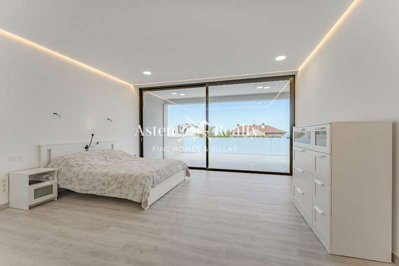 The upper floor has 2 bedrooms, 2 bathrooms and a spacious terrace with partial sea views. The basement level contains 2 guest bedrooms, a large garage for 6 cars, a pool machine room and a storeroom. 391 m2 built and well distributed.