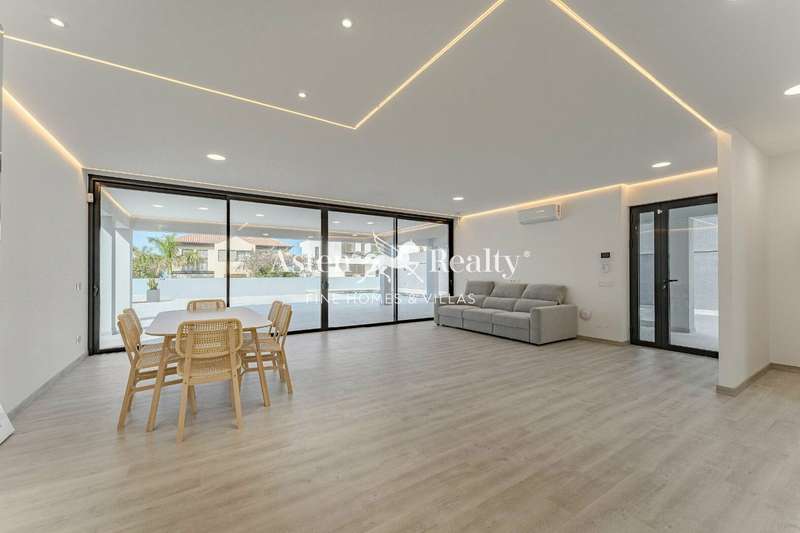 The property is sold partly furnished, with fitted kitchen (furniture, induction hob, oven, dishwasher, microwave and fridge), each bedroom has beds with mattresses, bedside tables and wardrobe, as well as the sofa, dining table and 6 chairs in the living room. The villa also has a hidden safe and air conditioning in the living room and in each of the bedrooms.