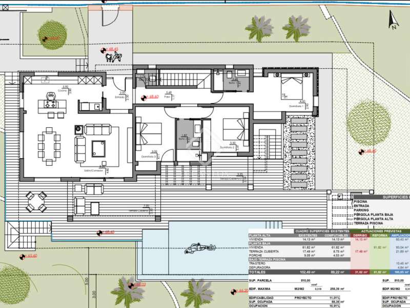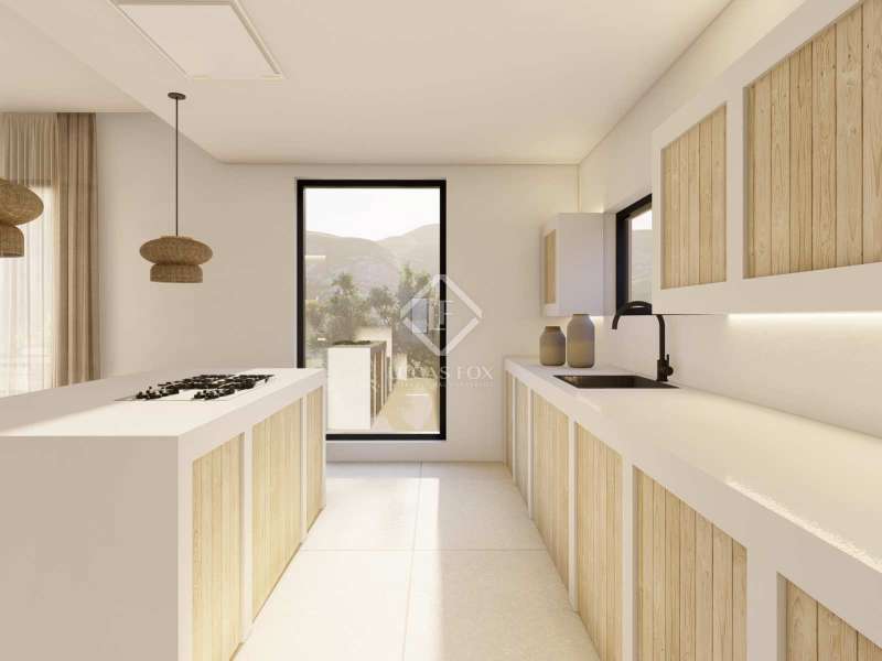 This spectacular property is located in a sought-after, residential area, close to the centre of Moraira, with award-winning beaches and restaurants, yet it is tranquil and private. The property is south-facing, with a flat plot, and boasts lovely open views across the countryside and stretching out towards the Mediterranean Sea. The sunny terraces and large windows ensure that even from inside the villa, it has a Mediterranean feel with indoor-outdoor living options. The villa itself consists of an entrance hall, an open-plan kitchen, living and dining space with a central island and which leads to the covered poolside terrace, a guest toilet, three bedrooms and two bathrooms on the ground floor. The main suite is found on the upper level with a bedroom, bathroom, dressing room and private terrace, plus a second terrace which is also accessible from downstairs; perfect for watching the sunset. The exterior of the property is equally charming, with wooden pergolas, a built-in barbecue area with an outdoor fireplace feature, a wonderful pool and modern finish combining with local stonework; ensuring the modern comforts meet authentic materials in a timeless design. Practical extras include a separate utility room, outdoor entertainment space and with outdoor kitchen, full heating, ventilation and air conditioning systems, air source heat pump, underfloor heating, solar energy, audiovisual security. Please contact us for further information.