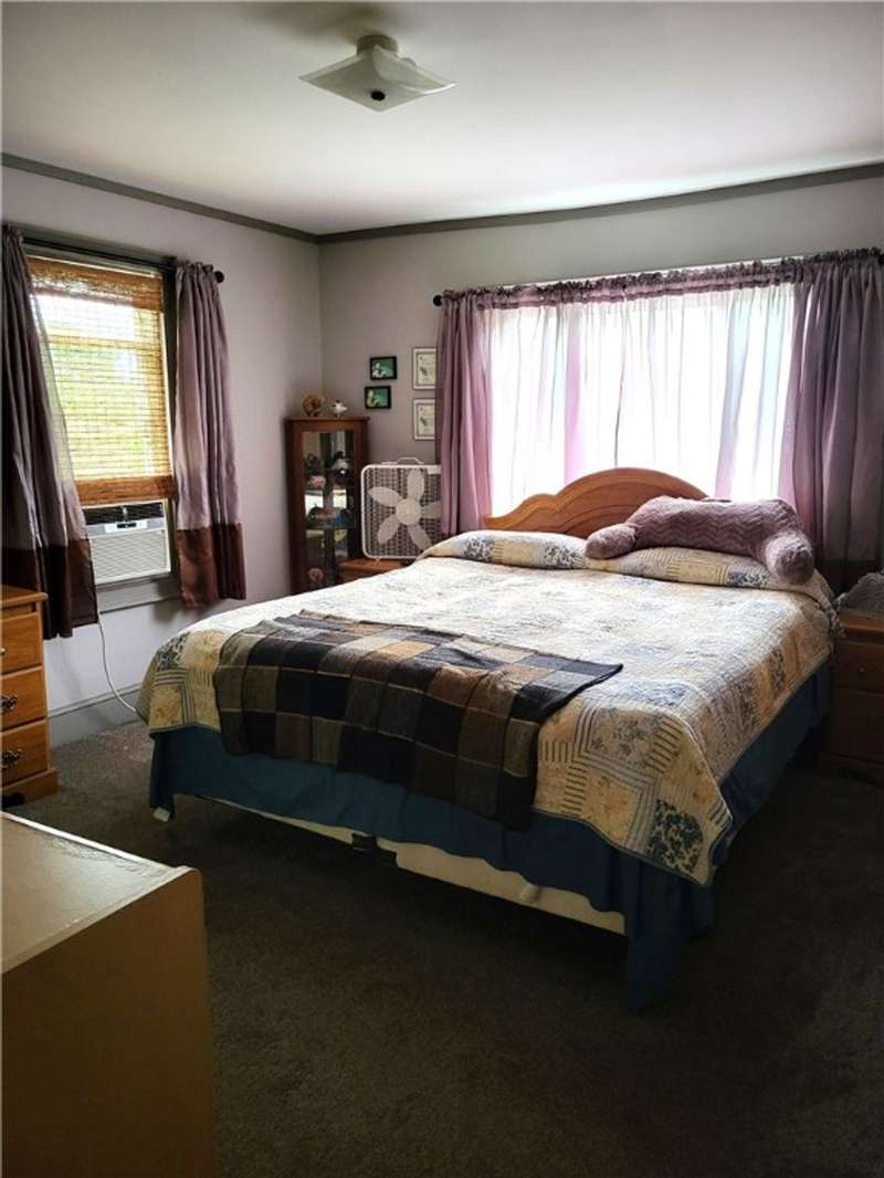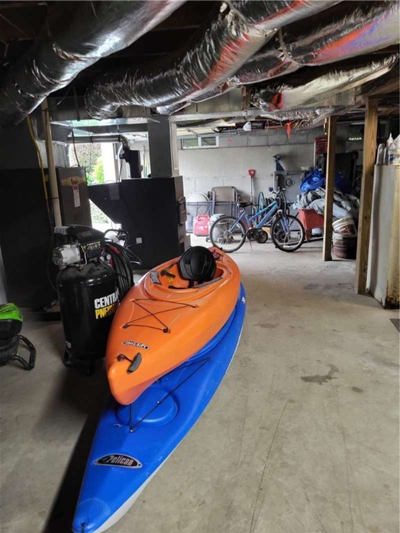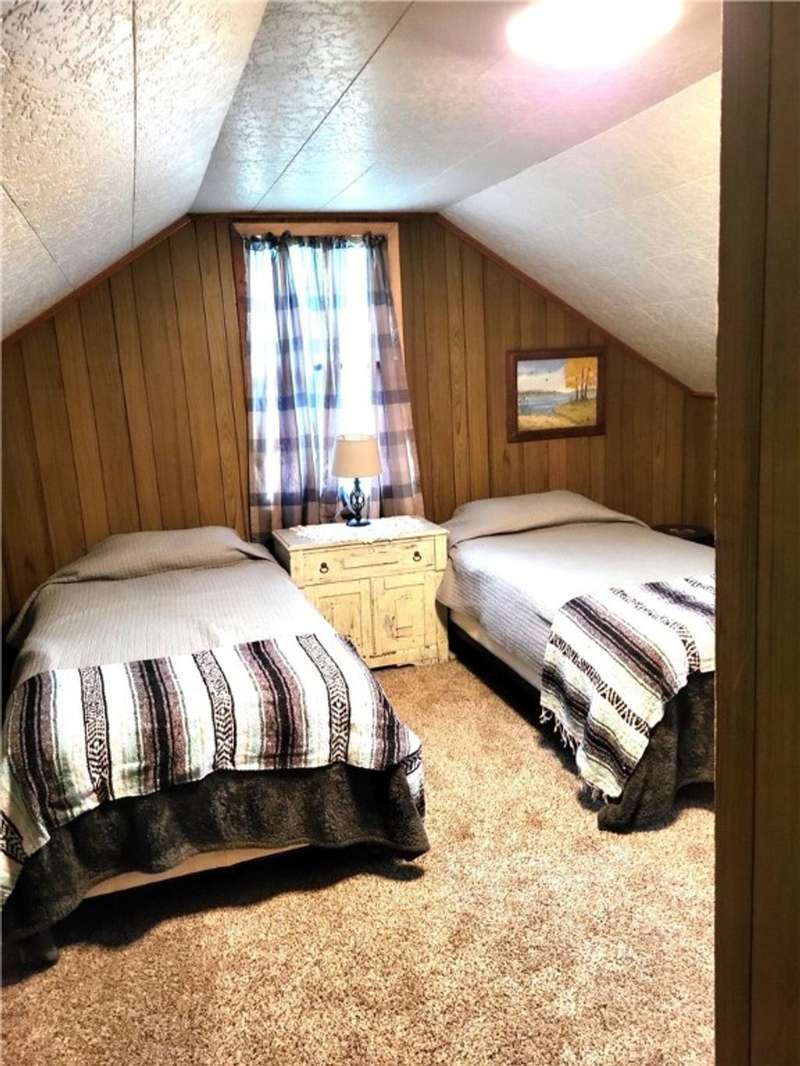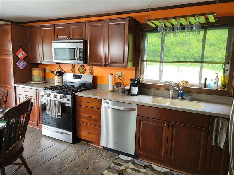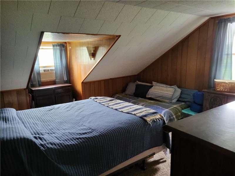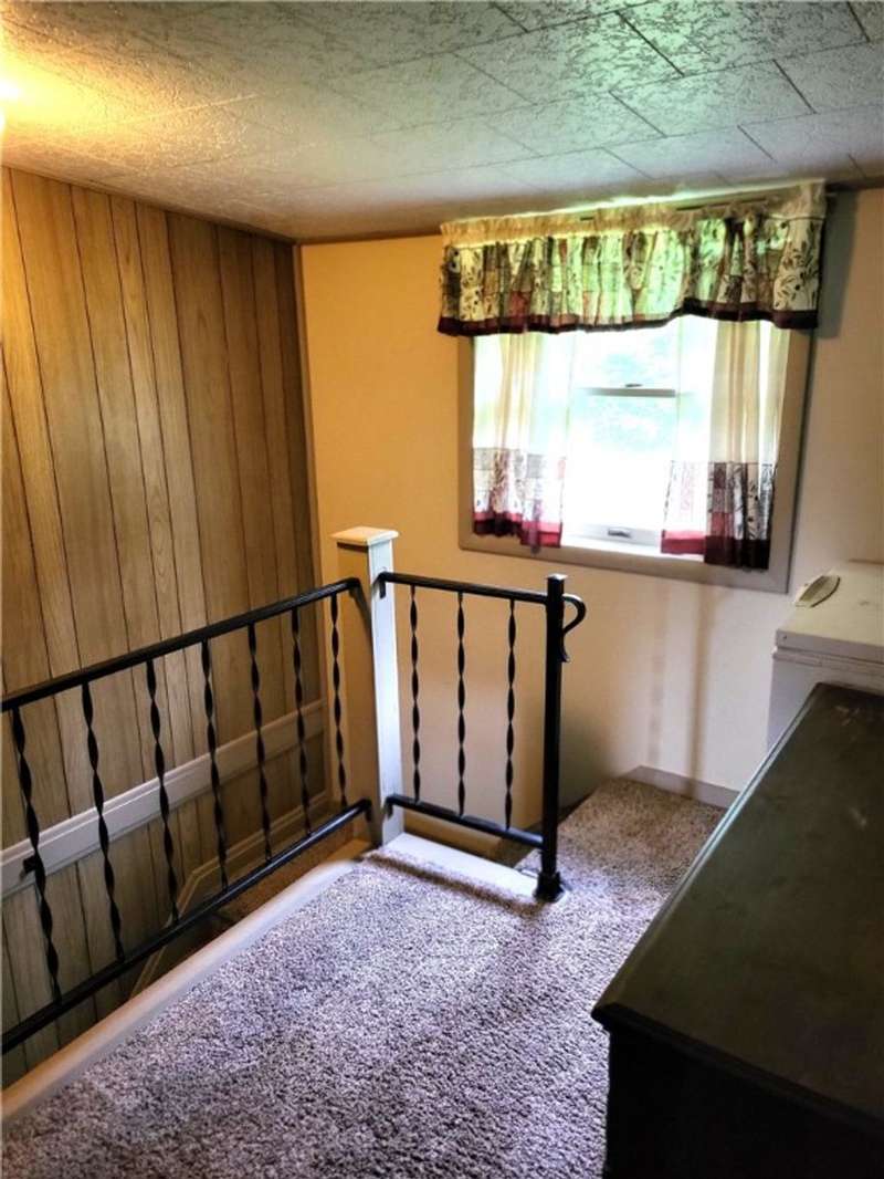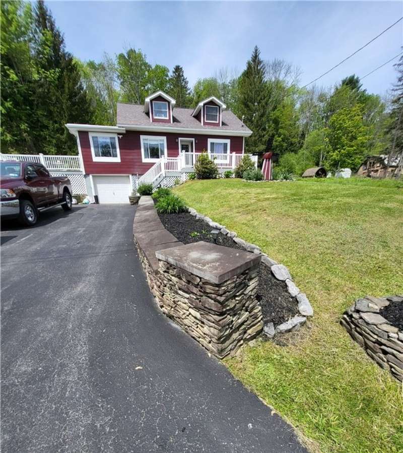 Nice house and good location, the perfect combination. This three bedroom, 2 bath Cape is located in Town but within walking distance of the Village and school. Large yard provides that rural setting and the room for a garden, pool or just nice open lawn. The kitchen is an upgraded eat in kitchen with doors out onto a large deck with yard access. There is an open floor plan that give a large open living room area with fireplace unit and large picture window. This area leads to a front foyer area and front porch. A hallway leads to a combination main bath and laundry, the primary bedroom and bath and a stairway to second floor. The primary bedroom has a large closet and a door to the primary bath with whirlpool tub; shower sink and closets. The second floor has a landing with two bedrooms off of it. One contains twin beds with dormer space and the other has a queen bed also with dormer space and storage areas.The house has a full basement with a garage space in it. In addition, there are two furnaces a propane one and coal one hooked together for easy conversion. The water system, hot water heater and electric panel are also located in the basement. The blacktopped driveway is nicely landscaped on both sides as well as along the stairs and walkway that leads to the deck entrance.