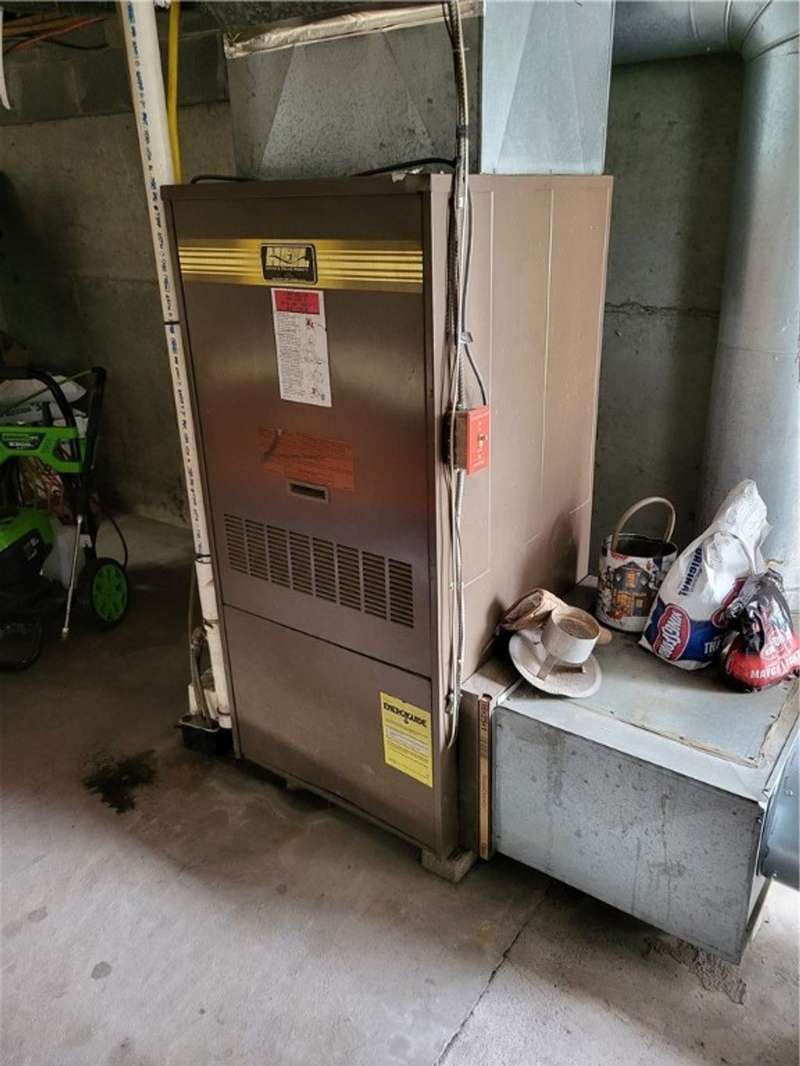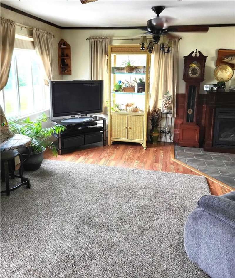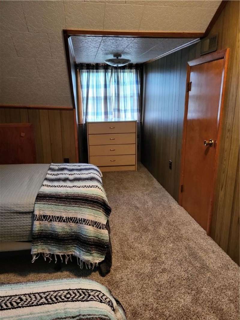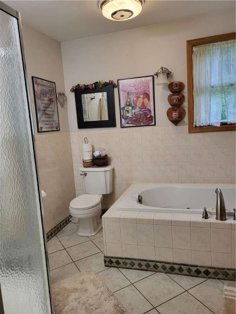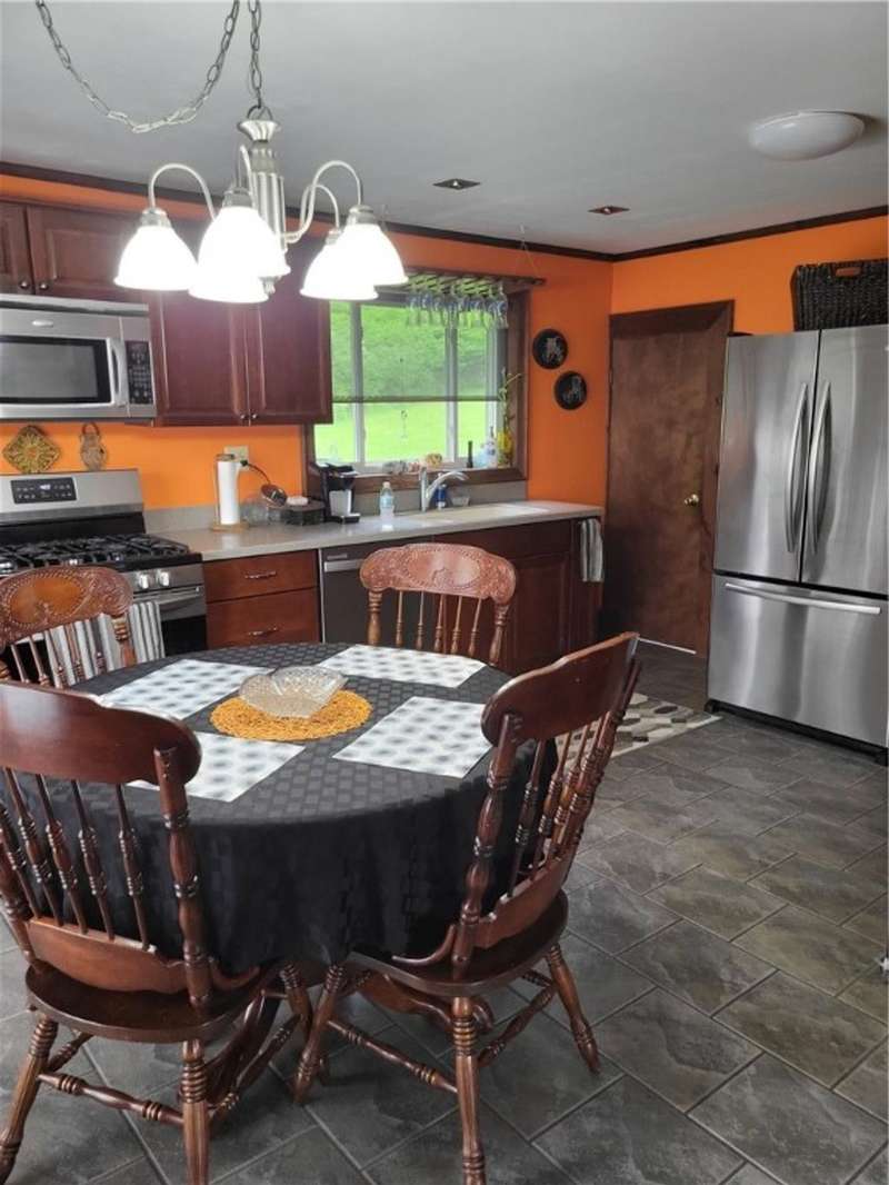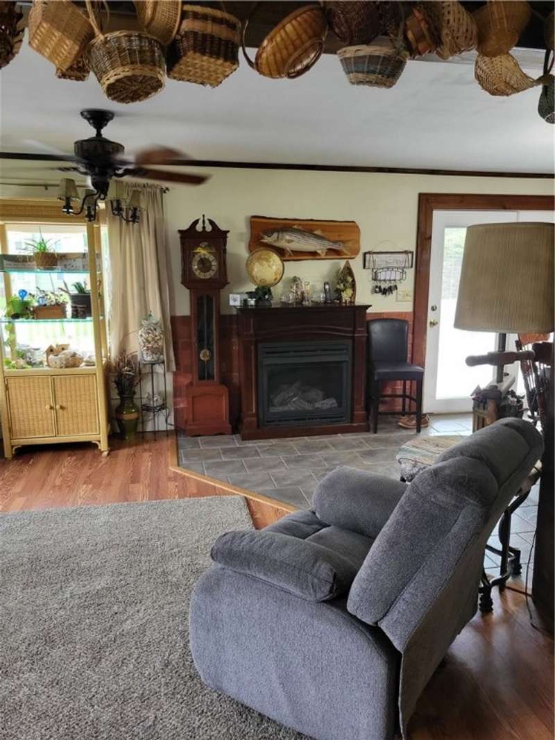 Nice house and good location, the perfect combination. This three bedroom, 2 bath Cape is located in Town but within walking distance of the Village and school. Large yard provides that rural setting and the room for a garden, pool or just nice open lawn. The kitchen is an upgraded eat in kitchen with doors out onto a large deck with yard access. There is an open floor plan that give a large open living room area with fireplace unit and large picture window. This area leads to a front foyer area and front porch. A hallway leads to a combination main bath and laundry, the primary bedroom and bath and a stairway to second floor. The primary bedroom has a large closet and a door to the primary bath with whirlpool tub; shower sink and closets. The second floor has a landing with two bedrooms off of it. One contains twin beds with dormer space and the other has a queen bed also with dormer space and storage areas.The house has a full basement with a garage space in it. In addition, there are two furnaces a propane one and coal one hooked together for easy conversion. The water system, hot water heater and electric panel are also located in the basement. The blacktopped driveway is nicely landscaped on both sides as well as along the stairs and walkway that leads to the deck entrance.
