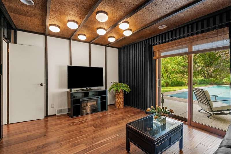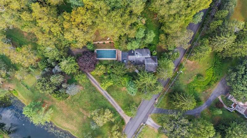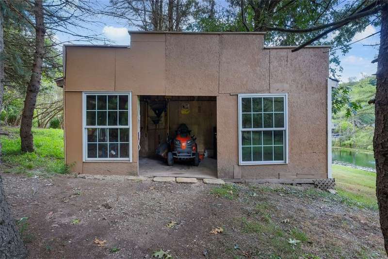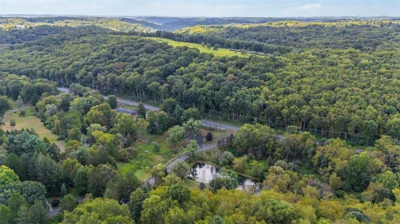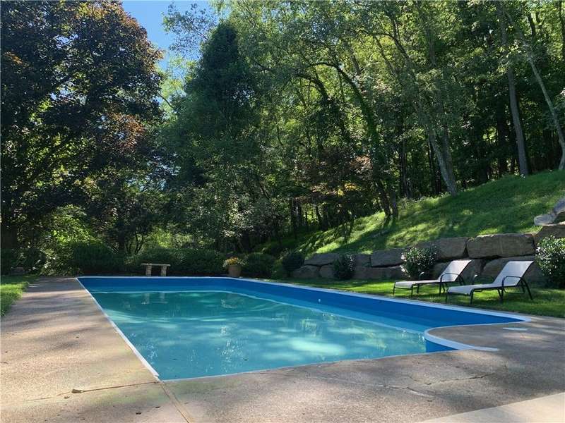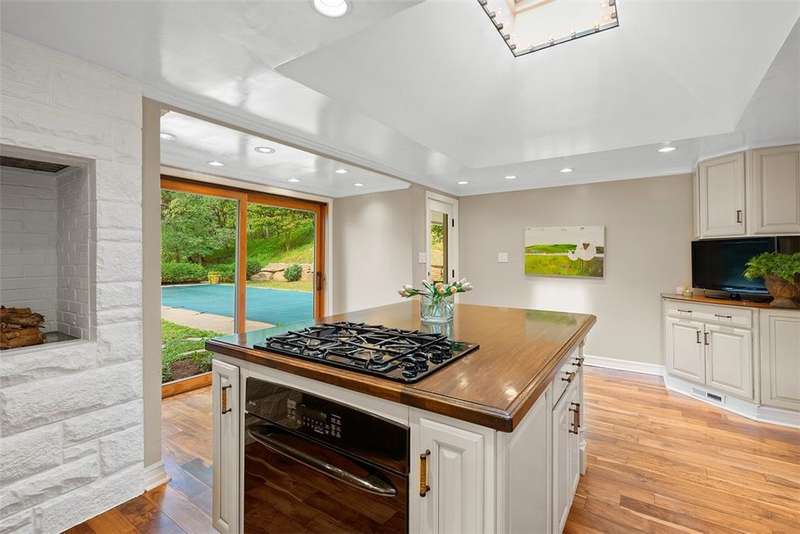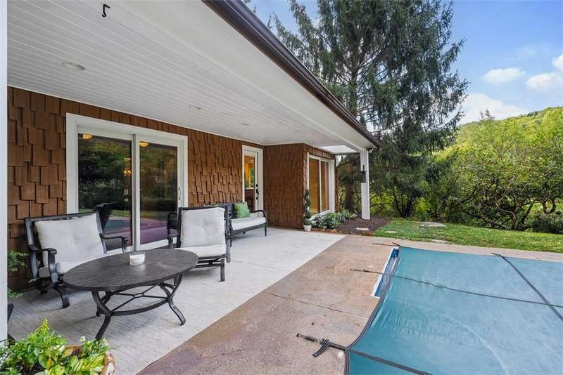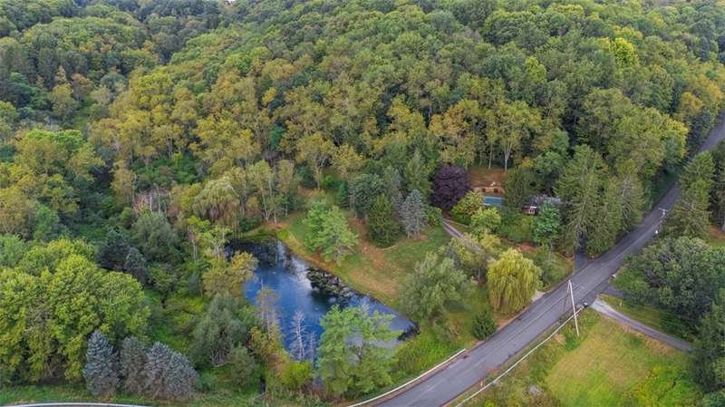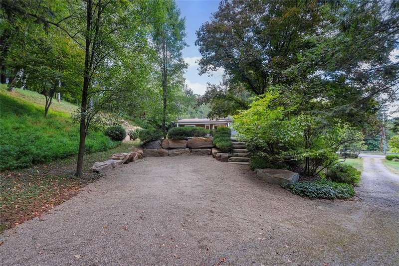 Welcome to this one-of-a-kind mid-century retreat set on 10 private acres w/an in-ground pool & 3/4 acre stocked pond. The living room impresses w/vaulted ceilings & dual-sided fireplace that flows seamlessly into the adjoining den space, creating warmth & character throughout. The kitchen is designed for both function & entertaining, directly off the dining room,& featuring an eat-in island, wood-burning fireplace &sliding doors to the pool. The primary suite includes an ensuite bath & loft area, while the spacious second &third bedrooms share a hall bath. A stylish bonus room features a sauna & sliders opening directly to the pool for seamless indoor-outdoor living. The main level also offers a convenient laundry room, & the basement provides excellent storage space. Tons of windows and skylights fill the home w/natural light, highlighting the sleek architectural design. Enjoy the serenity of your own private oasis, just minutes from the shopping &dining of Wexford. Located in PR SD.