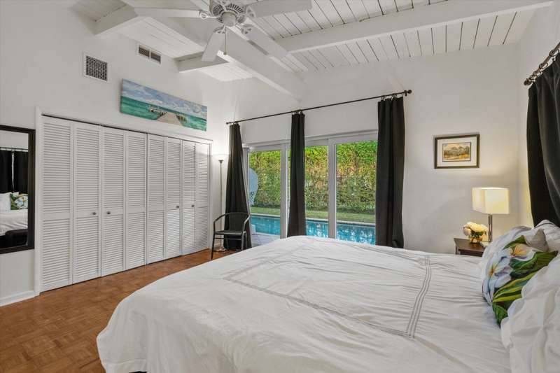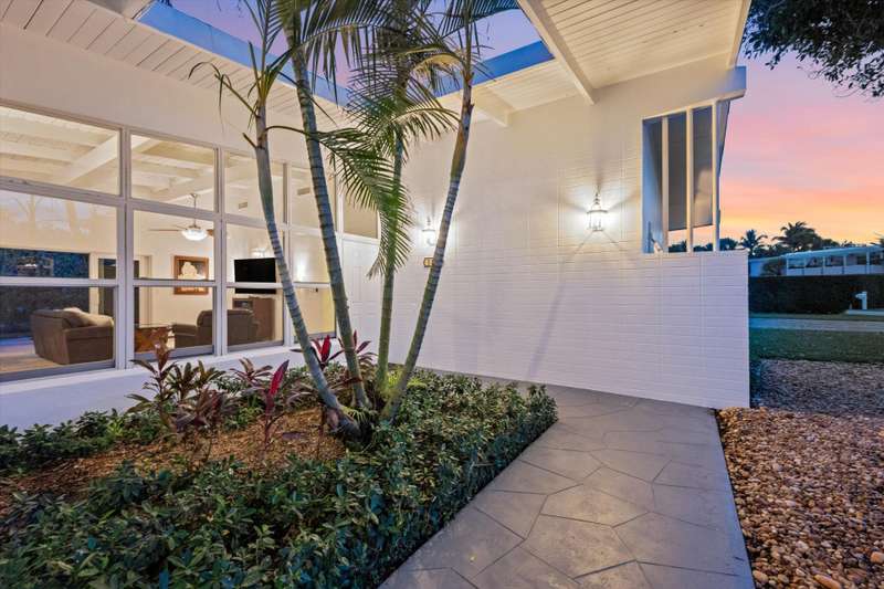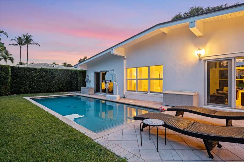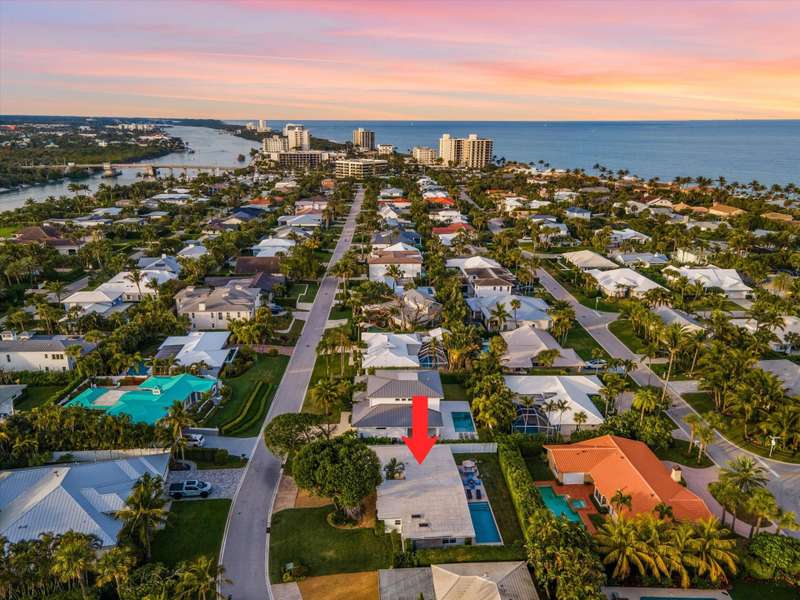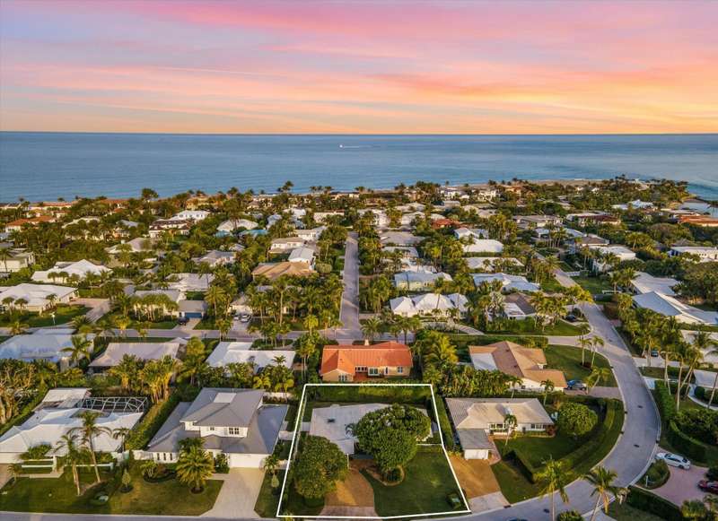 Just steps from the private, secured beaches of Jupiter Inlet Colony, this one-level Mid-Century coastal retreat sits on a prime interior lot, offering both charm and opportunity. Fully furnished and turnkey, this CBS-constructed home features 3 bedrooms, 2 baths, and an open floor plan where the kitchen seamlessly connects to the dining and living areas. With soaring volume ceilings, exposed beams, and all-impact windows and doors, the home is designed for both style and security. Outside, a lushly landscaped backyard oasis awaits, complete with a private pool enveloped by greenery. Offered at land value and sold as-is. This property presents a rare chance to build new or renovated in one of the most coveted beachside communities. Surrounded by the Atlantic Ocean, Intracoastal Waterway, and Jupiter Inlet, this hidden gem on Jupiter Island features 240 exclusive single-family residences with a 24-hour private police department and dedicated beach access. Residents enjoy a secluded coastal lifestyle with pristine beaches, world-class fishing and snorkeling, an optional Beach Club membership, a private marina, and a yacht club. All just minutes from top-tier shopping and dining. Dont miss this rare opportunity to own in Jupiter Inlet Colonyone of South Floridas best-kept secrets!