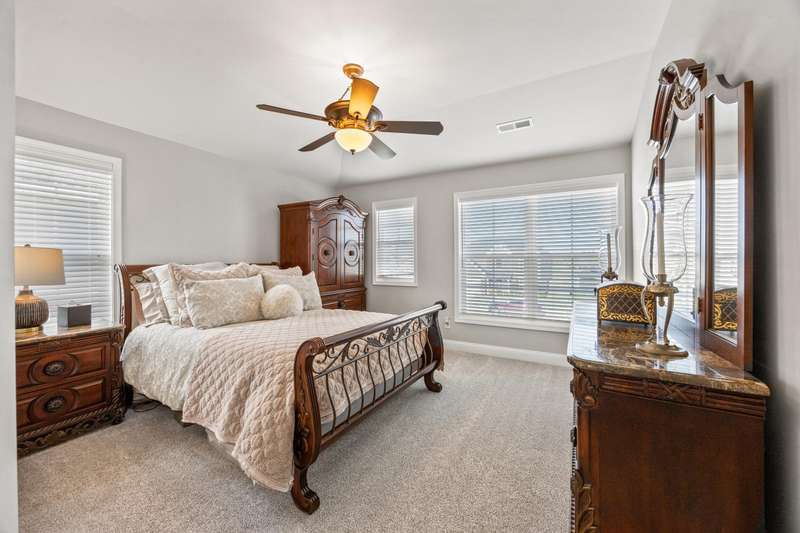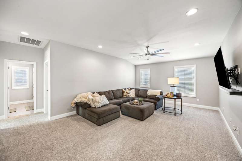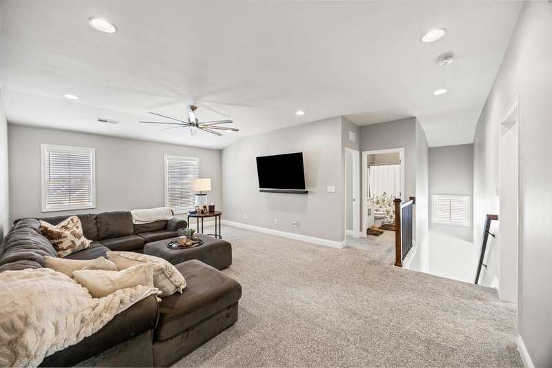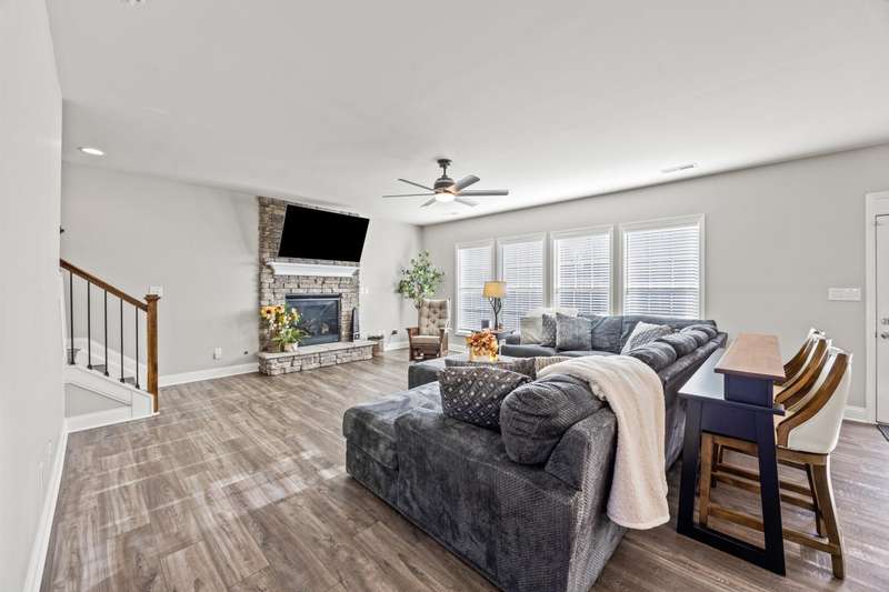 Better than new! Welcome to a home that feels instantly inviting where everyday comfort meets effortless style. With more than 3,100 sq ft, this 4-bedroom, 3.5-bath home offers space for everyone without sacrificing warmth or connection. The entry opens to a flexible room framed with beautiful shiplap - perfect as a dining area, playroom, or home office. Natural light fills the family room, where a stacked-stone gas fireplace with blower creates the perfect backdrop for cozy evenings and casual weekends. The kitchen shines with White Symphony granite, a dramatic backsplash, white cabinetry, and comes with black stainless appliances - including gas range, microwave drawer, dishwasher, and French-door refrigerator. Utility room is also on the 1st floor and washer, dryer will remain with the home. Upstairs, the primary suite provides a private retreat with a double-bowl vanity, tiled 4*4 shower, oversized soaking tub and a walk-in closet. A spacious loft, three additional bedrooms, and two more baths (one ensuite) offers comfort for family and guests. Features include these recent updates: fresh interior paint throughout, new lighting, LED bathroom mirrors, new 2" blinds on every window, stained plank stairs, and professionally cleaned flooring. Outdoor living is just as enjoyable, with a covered patio overlooking a fully fenced backyard and also some added patio space- an ideal setting for coffee in the morning or unwinding with friends in evening by the firepit. The garage is a standout feature of its own, now transformed with epoxy flooring, professional storage cabinetry, and a whisper-quiet LiftMaster opener. Convenient to parks, schools, shopping, restaurants, athletic clubs, health facilities and everyday amenities. This home blends space, comfort, and smart upgrades in a location that lets you enjoy it all.