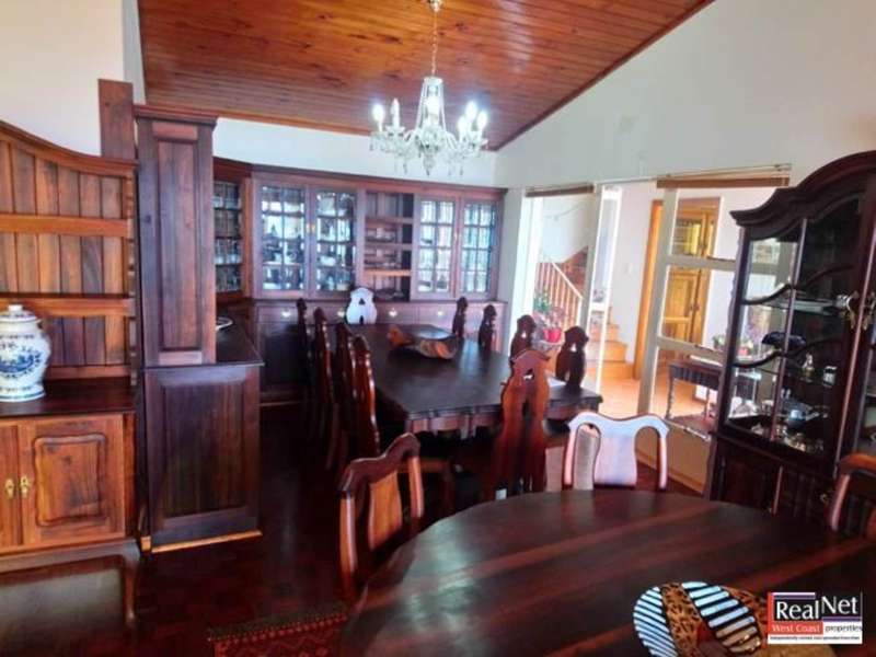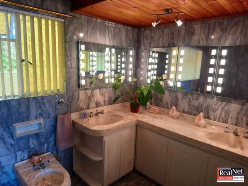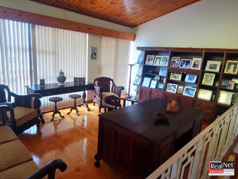 When entering this impressive property, the house greets you with warmth and shelters you from the outside world. This spacious family home boasts with 4 large bedrooms, fully carpeted, and all through the home solid wooden built-in cupboards are to found, adding to the warmth and comfort. Two full bathrooms, of which one is en-suite, can be found complete with marble finishing. The massive kitchen is designed for comfort, with marble counter tops, tiles, stove and extractor fan. It leads to the outside patio area where one finds an outdoor braai, nestled between the house and terrace, perfect to unwind after a long day. With a study and loft-like reading room, this property truly caters for every need. There is even a bar and guest bathroom for entertaining. Doors from the bar and living room lead to the tiled front veranda, where one can overlook the entire bay of Saldanha. Meeting you at the top of the drive way, which has ample parking space, one finds the double garages with an additional flat that can be used as storage or additional accommodation. In the backyard you will find additional toilet facilities, a store room and a laundry room. The mint condition property is perfect as an impressive family home or can very easily be utilized as a guesthouse. Contact for a viewing today... Do not miss this once in a lifetime opportunity