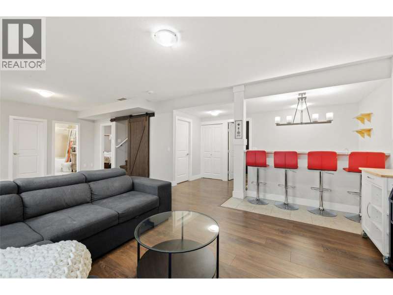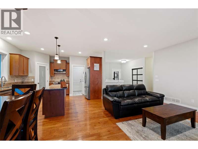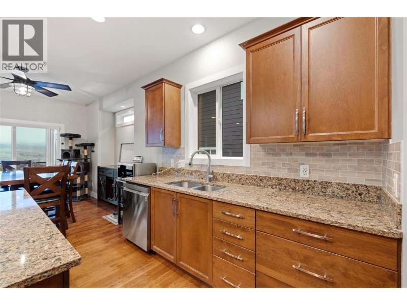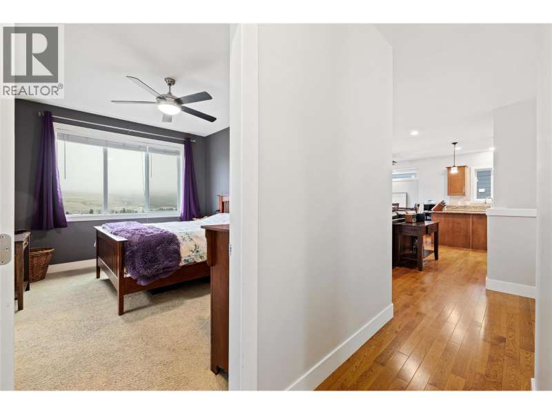 At the top of Sage Glen, this freshly painted walkout rancher is perfect for a large family, or else it can be easily suited with existing plumbing downstairs. Enter into an open concept living and dining area with a spacious kitchen equipped with granite countertops, a large island, walk-in pantry, and S/S appliance including a natural gas range. Off the dining area is a covered deck, gas BBQ hookup and expansive valley to mountain views over beautiful Lake Country farmland. Upstairs you'll also find your large primary bedroom with its own walk-in closet and full ensuite, in addition another bedroom, full bathroom and laundry. Downstairs you will find more bedrooms, a full bathroom, and a large open rec area with wet bar that walks out into a flat, fenced yard with a separate shed and more beautiful views. Well kept home with upgrades, plenty of storage, 5-zone irrigation (front and back yards), double garage, 3 sheds and the perfect location just minutes into town and only 10 minutes to the airport or UBCO and only 20 minutes to Kelowna's downtown core. (id:58403)