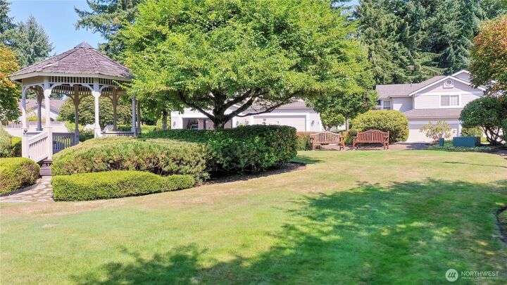 Impeccable home in the boutique community of Belvedere Place at Mill Creek Country Club. Thoughtfully designed 1,950+ sq ft floor plan w/ 2 bedrooms plus den (currently used as a bedroom) and 3 baths. Light-filled interiors feature soaring ceilings, French doors (including pocket French), and a well-appointed kitchen. Spacious Primary Retreat Suite with spa-like bath plus additional ensuite. Private courtyard backyard creates a true sanctuary. HOA covers front grounds & exterior for low-maintenance living. Minutes to Mill Creek Town Center, dining, and amenities. Cul-de-sac location w/common area park and walking trails. Love where you live and Live where you play. Pride of ownership shines in this impeccable home. Must See!