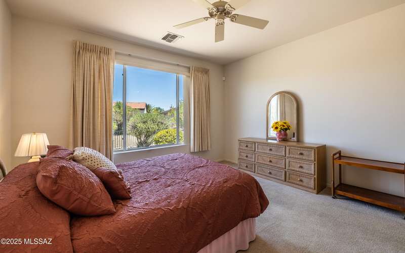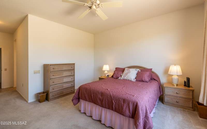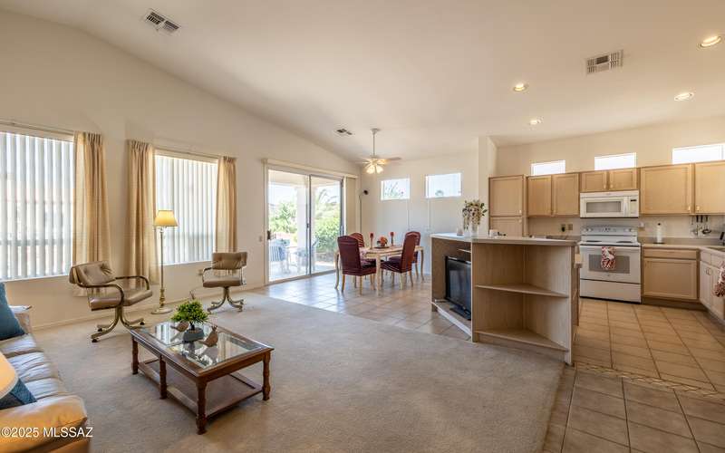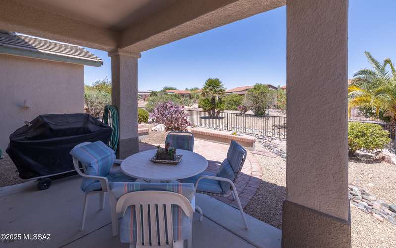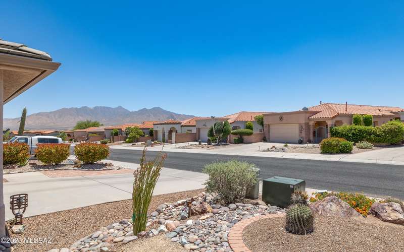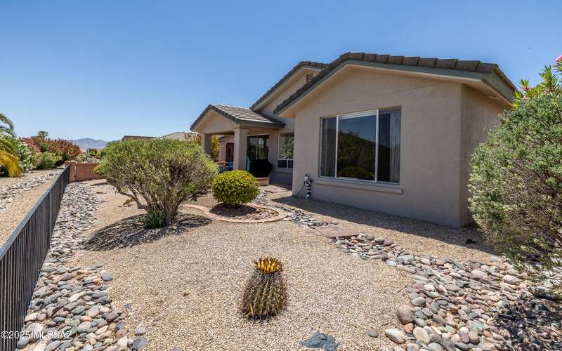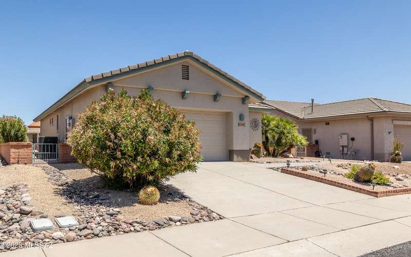 Motivate Sellers! Welcome to this charming 2-bedroom, 2-bath home in the highly sought-after San Ignacia Vista community. From the front Mountain Views and enhanced curb appeal with a freshly painted exterior. Inside, you'll find a spacious open-concept layout perfect for modern living. The living area flows seamlessly into the kitchen and dining space, creating an inviting atmosphere for both everyday comfort and entertaining. The second bedroom functions as a private suite, enclosed with pocket door, that separates both the bathroom and adjoining bath-offering enhanced privacy. Step out back to a peaceful, low-maintenance backyard featuring a covered patio and view fencing. Watch local wildlife roam by and take in the tranquil desert surroundings-Your very slice of nature at home.