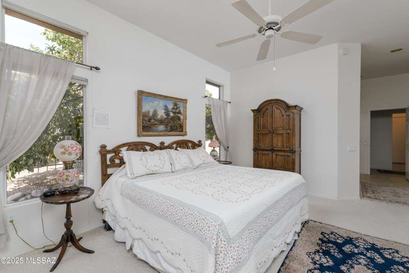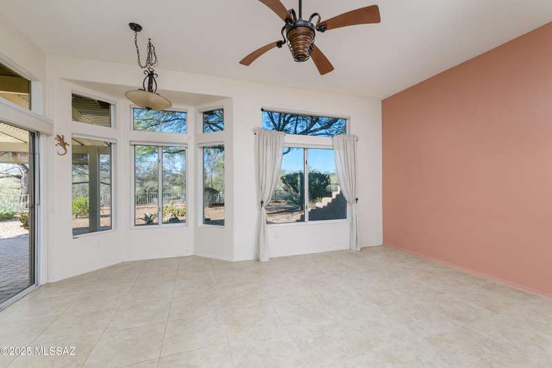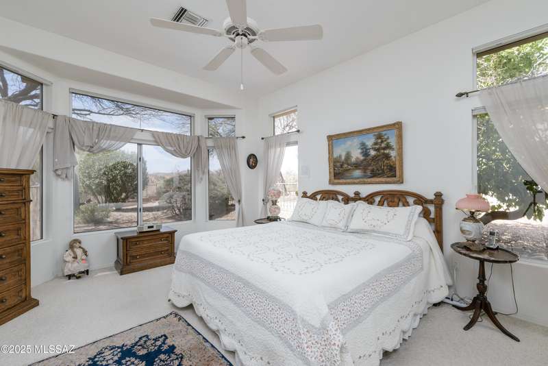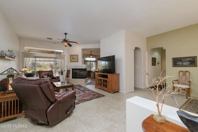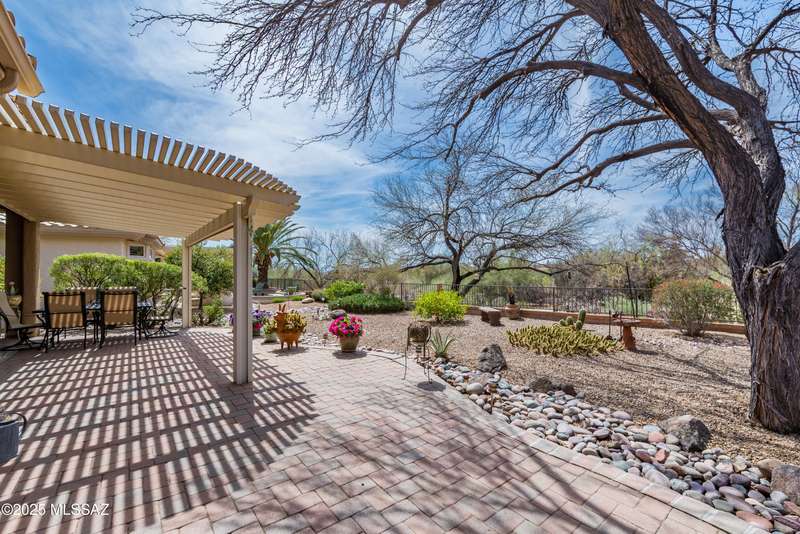 *Turn key ready. Totally updated home sits on a large lot that backs to an expansive desert area, then golf course. Unbelievable privacy! Complete new roof in 2015. Refurbished in July 2025. AC/Heating replaced 2020. No poly pipes. Split bedroom plan. Two master suites with luxury bathrooms and walk in showers. Third bath is a powder room. Family and living rooms separated by cozy contemporary 2 sided fireplace. Airy open kitchen w/granite countertops and custom alder cabinets w/rollout shelves. This home is light and bright with skylights and bay windows. Tons of storage plus a 2 1/2 car garage. Patio is covered and extended-beautifully done with an awning and all smooth pavers. Lots of shade and fruit trees. Come enjoy this special home - inside and out!