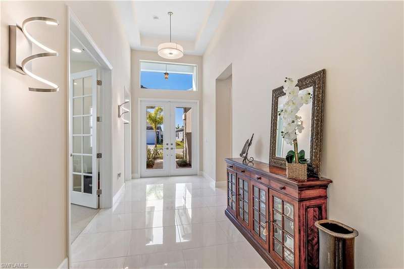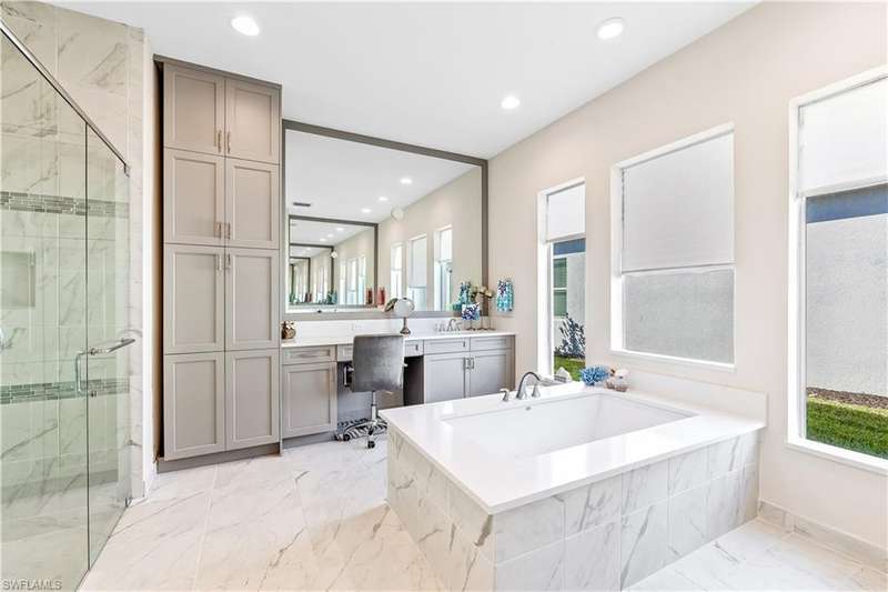 Preserve view and lake view! Discover the epitome of luxury living with this highly sought-after "Sunrise" floorplan, featuring 3 spacious bedrooms, each with a private ensuite bathroom, a large versatile den, and a 3-car garage. The expansive covered lanai, complete with a stunning pool and spa with elegant water features, invites you to relax and unwind in your private outdoor oasis. Perfectly situated in the heart of Valencia Trails, this home offers an unparalleled blend of tranquility and natural beauty, boasting a serene preserve and lake view that provides a picturesque backdrop for everyday living. Designed for effortless entertaining, the outdoor space is pre-plumbed for an outdoor kitchen, ready to become your alfresco dining haven. Inside, you ll find thoughtfully curated upgrades, including impact-resistant windows, sleek 24x24 polished porcelain floors, custom built-in linen closets, framed bathroom mirrors, a striking glass entry door, and more all set against a neutr
