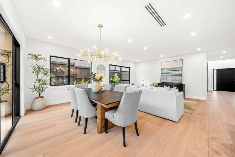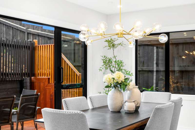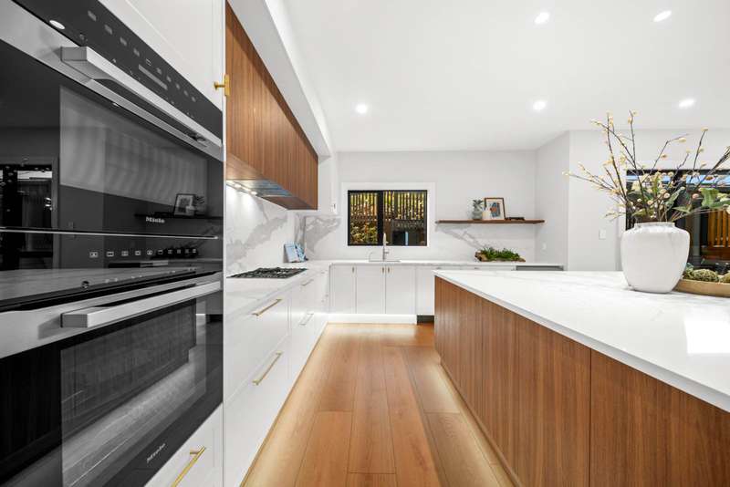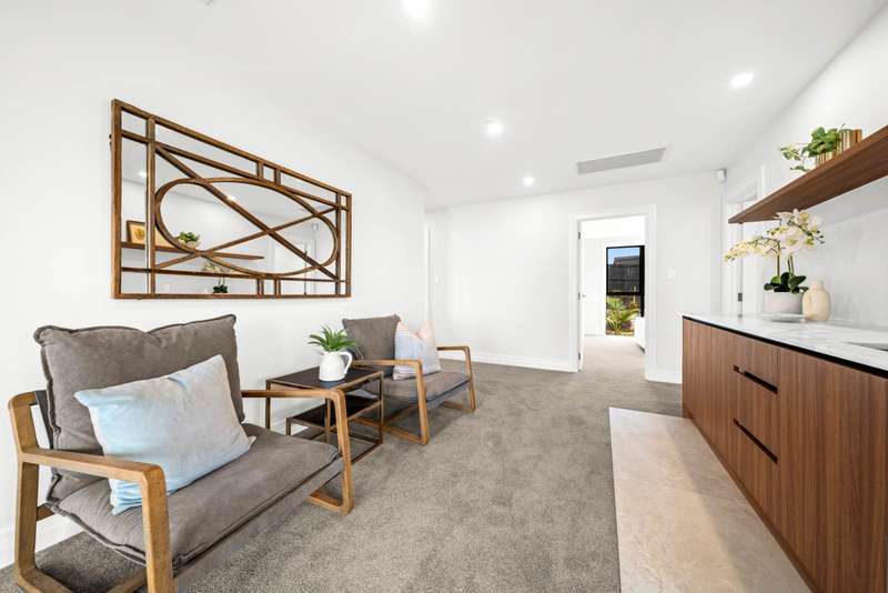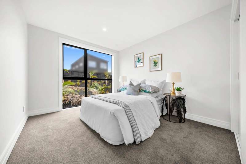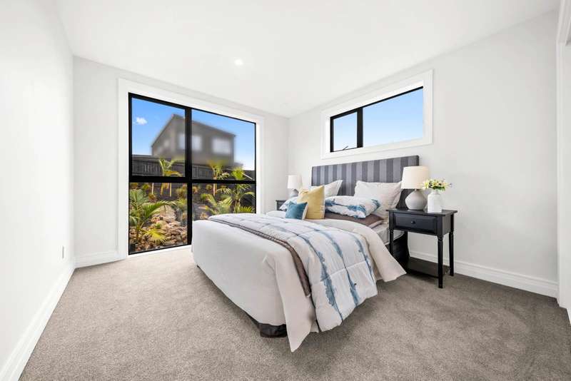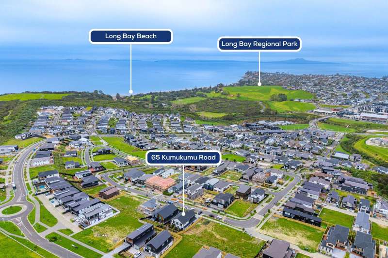 Located on one of Long Bay’s most sought-after streets, this stunning home enjoys elevated views that make the whole space feel open, bright and inviting. Just a short stroll takes you to Long Bay Beach and the vibrant Long Bay Village — home to cafés, restaurants, boutique shops and a New World supermarket. Step inside to discover an elegant and thoughtfully designed interior. The ground floor features a modern open-plan layout — the main kitchen with a generous walk-in pantry, dining and living areas, a separate lounge, and a convenient guest bathroom. There’s also a large bedroom with an en-suite and its own private entrance, perfect for guests or extended family. Upstairs offers plush carpets for cosy living, with four spacious double bedrooms — two with their own en-suites — plus a stylish family bathroom. The second lounge opens to a large deck showcasing elevated views of the sea and Long Bay. This home comes fully equipped with premium features including top-of-the-line German Miele kitchen appliances, central air conditioning, underfloor heating in all bathrooms, a video door security system, and warm LED lighting throughout. Every detail has been designed with comfort and style in mind — this is the modern coastal lifestyle at its best.