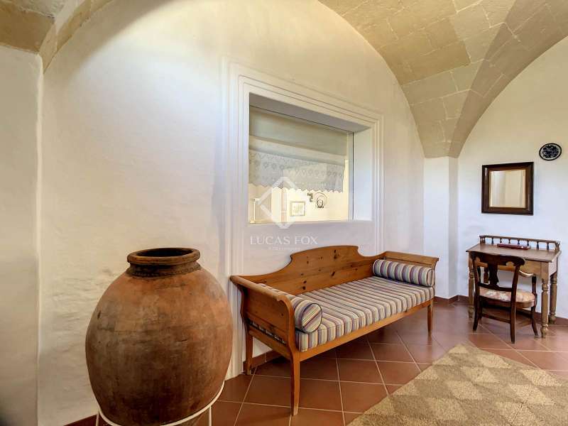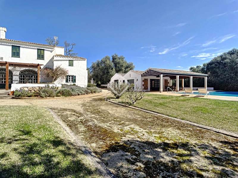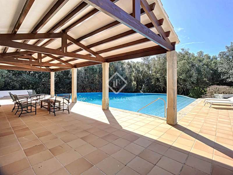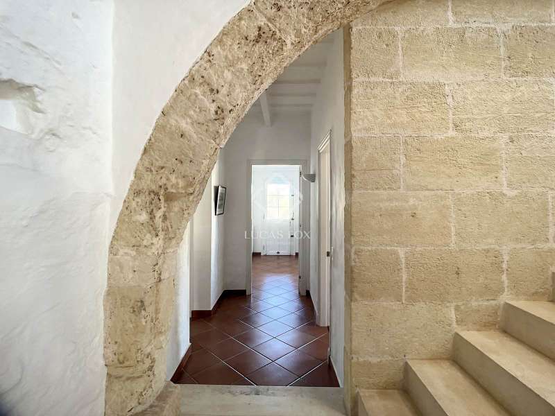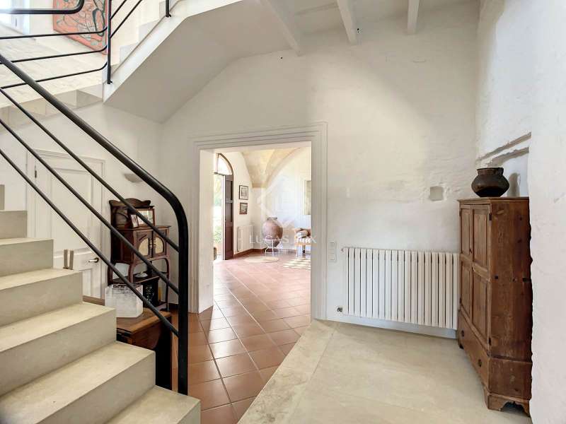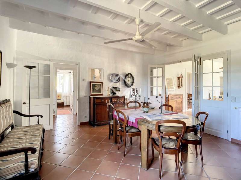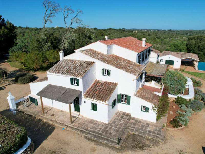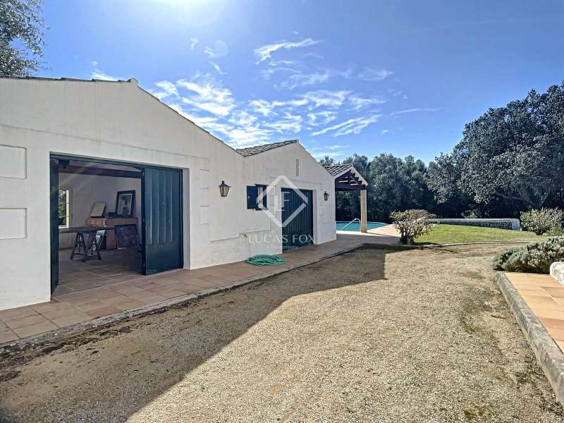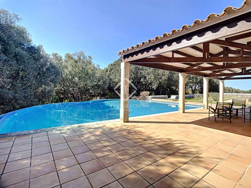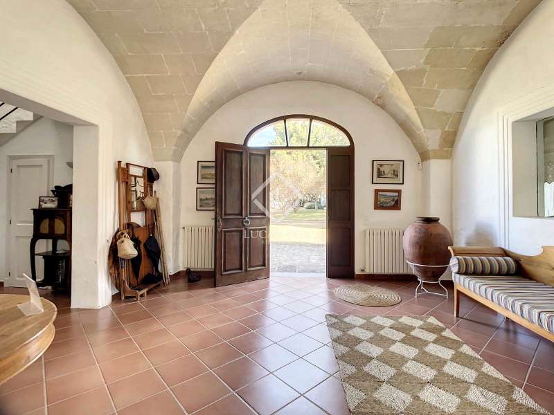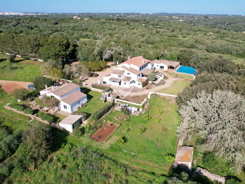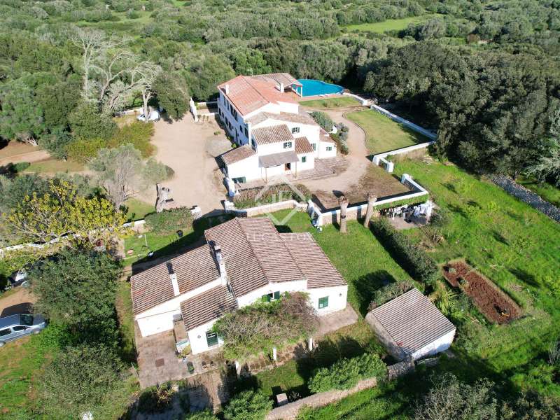 Impressive country house of 1,200 m² built on a plot of more than 4 hectares of land that provide the house with beautiful views of groves and the Menorcan countryside, as well as absolute tranquility and privacy. It is located in Alaior, a few minutes from the town centre. It has four buildings: the main house, the service house, the pool house and a stable with a garage. The main house has access with imposing trees on each side of the road that lead to the entrance of the house. It also has an independent access that leads to the second house. The main house is distributed over two floors. On the ground floor we find a majestic and spacious entrance with sandstone vaults that leads to different rooms, including a bright and large covered porch, the stairs to access the upper floor, the kitchen with a spacious laundry room, a bedroom with a bathroom for the service staff, two living rooms, one of them with a fireplace, a dining room, an office, two bedrooms and a spacious bathroom with bathtub and a shower. On the first floor, there are three bedrooms with private bathrooms, one of them with a dressing room, two bedrooms, a living room, a large room with a pool table and a terrace overlooking the pool. The house is in excellent condition, with a renovation carried out with great delicacy and attention to detail, which respects the character of the house at all times and highlights the natural beauty of each corner. The house has central heating radiators in all rooms. Outside, we have the magnificent porch of the main house with the stone oven and views of the immense forest. In addition, we find the infinity pool surrounded by forest, with its own house with a porch that surrounds two sides of the house. Below this house we have a spacious garage. Without a doubt, a unique home to live in all year round, or to spend time with family and/or friends. Contact us for more information, or to arrange a visit.