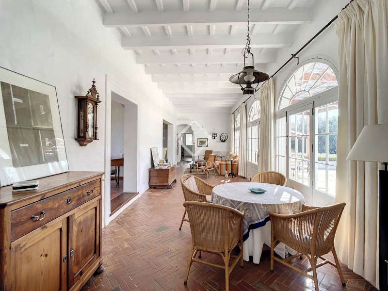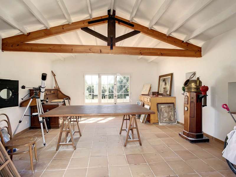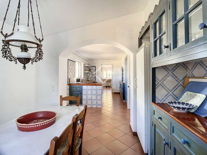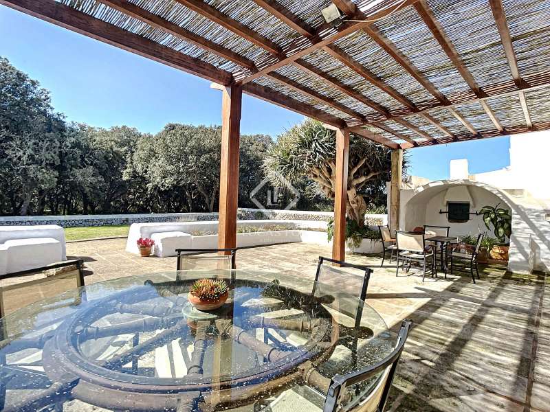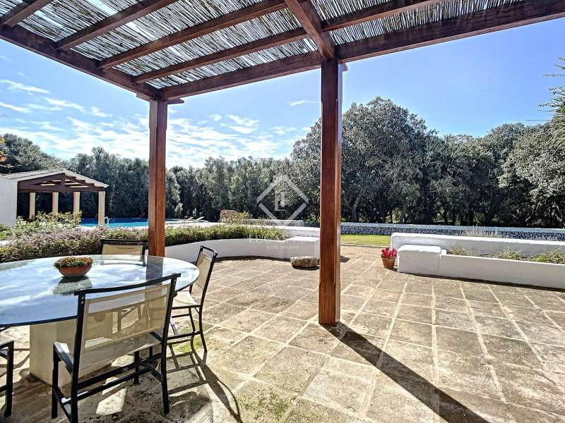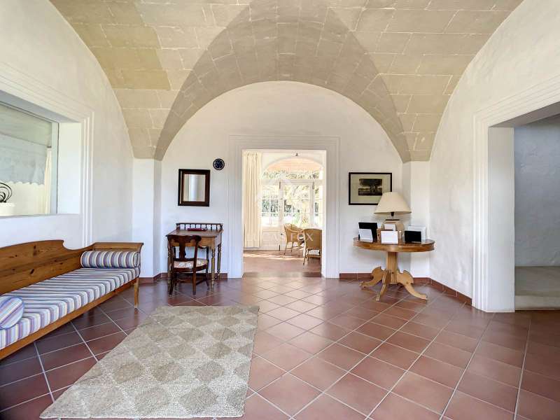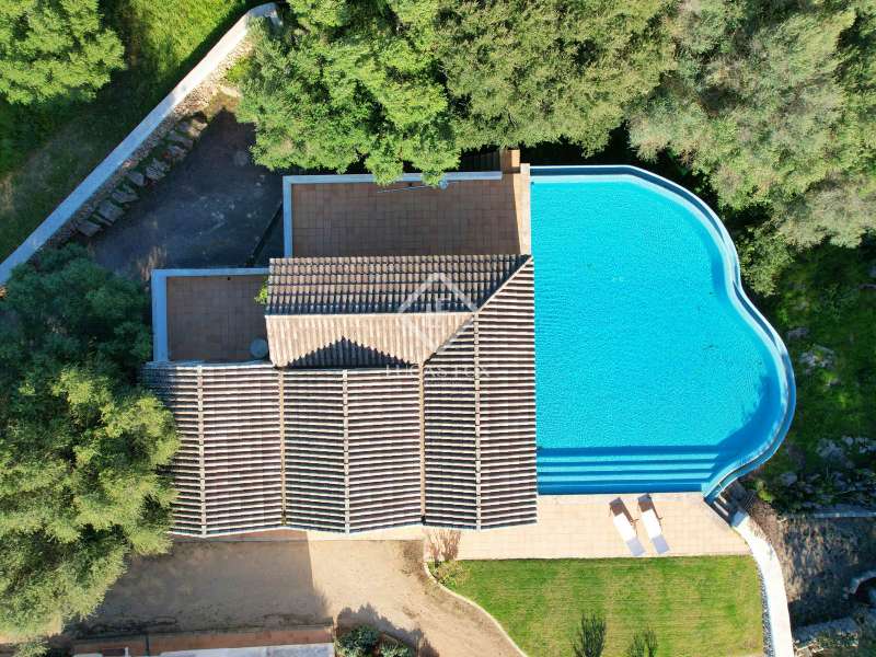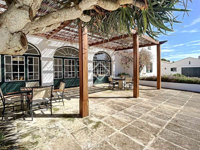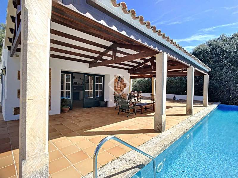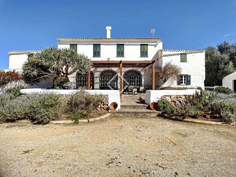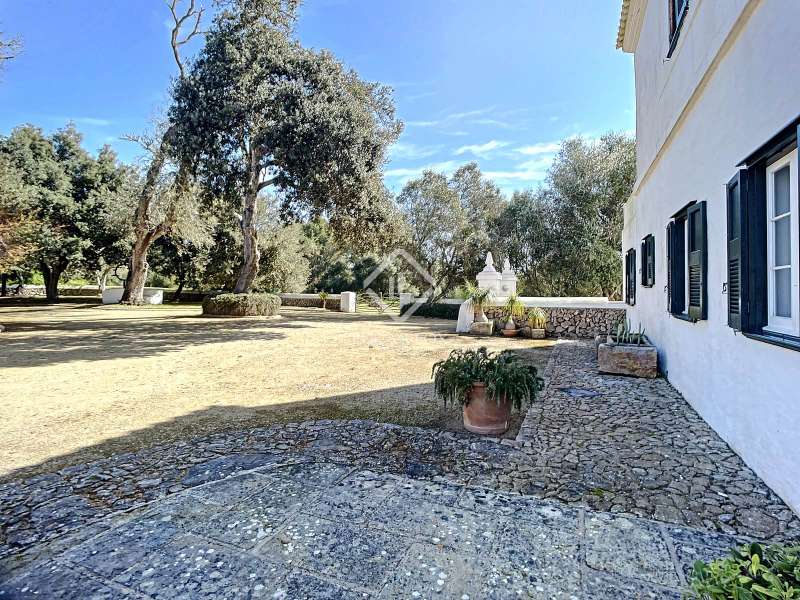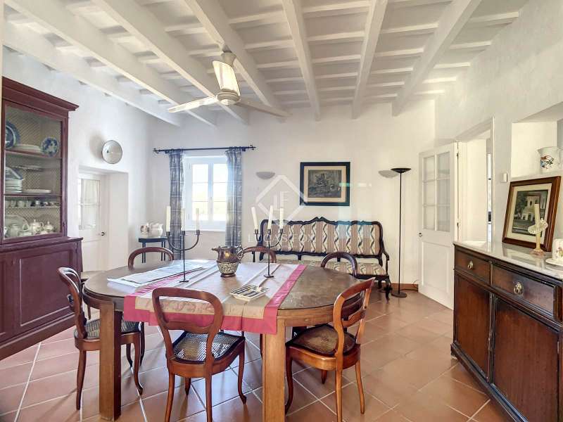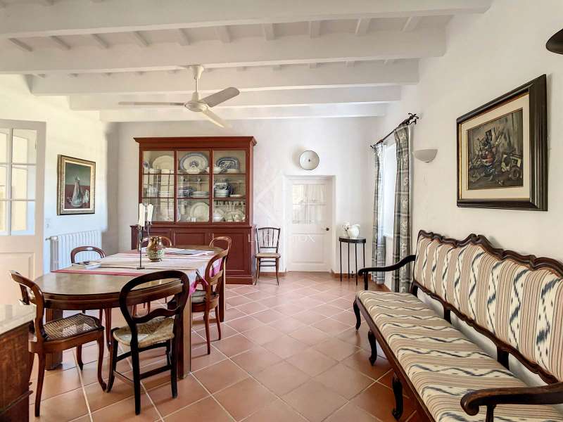 Impressive country house of 1,200 m² built on a plot of more than 4 hectares of land that provide the house with beautiful views of groves and the Menorcan countryside, as well as absolute tranquility and privacy. It is located in Alaior, a few minutes from the town centre. It has four buildings: the main house, the service house, the pool house and a stable with a garage. The main house has access with imposing trees on each side of the road that lead to the entrance of the house. It also has an independent access that leads to the second house. The main house is distributed over two floors. On the ground floor we find a majestic and spacious entrance with sandstone vaults that leads to different rooms, including a bright and large covered porch, the stairs to access the upper floor, the kitchen with a spacious laundry room, a bedroom with a bathroom for the service staff, two living rooms, one of them with a fireplace, a dining room, an office, two bedrooms and a spacious bathroom with bathtub and a shower. On the first floor, there are three bedrooms with private bathrooms, one of them with a dressing room, two bedrooms, a living room, a large room with a pool table and a terrace overlooking the pool. The house is in excellent condition, with a renovation carried out with great delicacy and attention to detail, which respects the character of the house at all times and highlights the natural beauty of each corner. The house has central heating radiators in all rooms. Outside, we have the magnificent porch of the main house with the stone oven and views of the immense forest. In addition, we find the infinity pool surrounded by forest, with its own house with a porch that surrounds two sides of the house. Below this house we have a spacious garage. Without a doubt, a unique home to live in all year round, or to spend time with family and/or friends. Contact us for more information, or to arrange a visit.