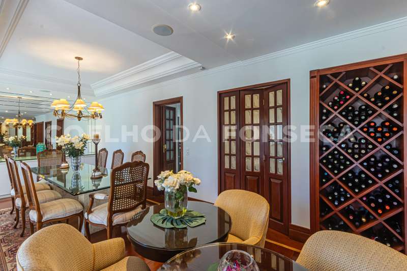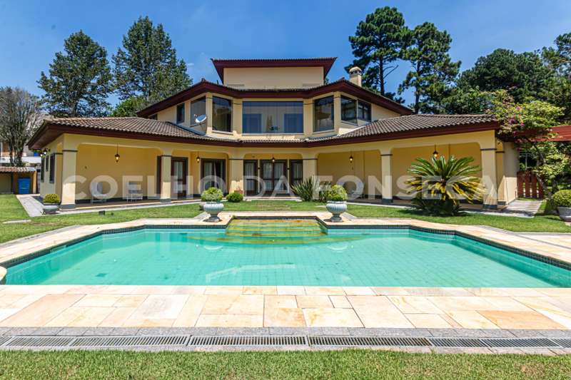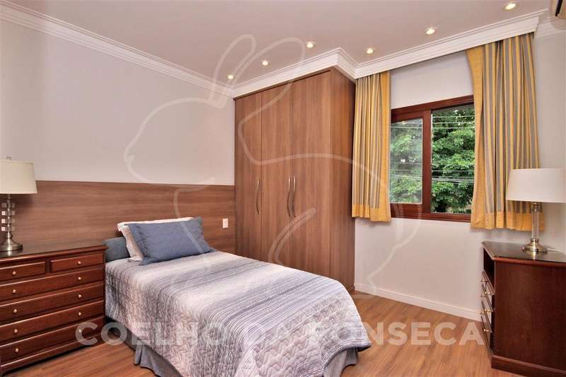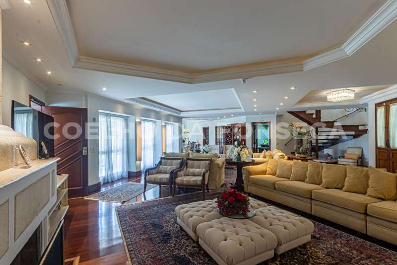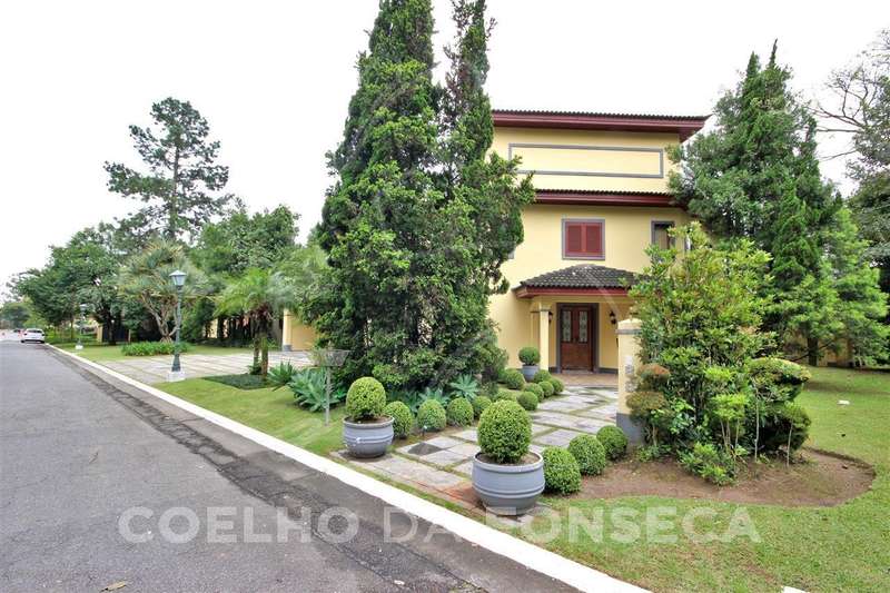 Casa em Condomínio no bairro Aldeia da Serra com 470m² área construída, 4 dormitório(s), 4 suíte(s), 6 vaga(s), 4 banheiro(s), piscina, esquina, sauna, mobiliado (a), ar condicionado, dep. de empregados, reformado (a), varanda, aquecedor solar.